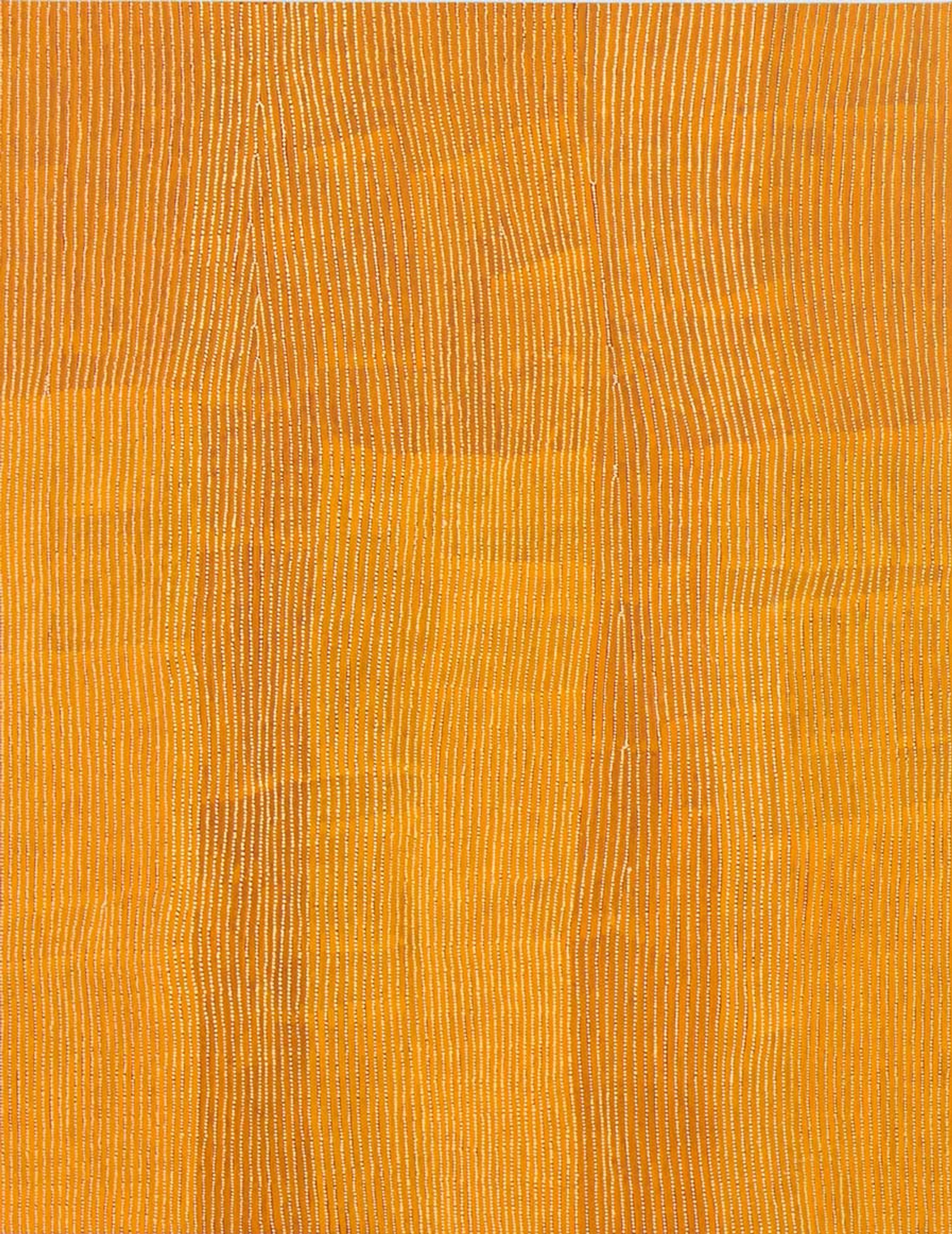 Aboriginal art has a growing presence at the Tefaf fairs. In Maastricht in March, the Melbourne and New York-based D’Lan Contemporary made fair history with a stand entirely dedicated to work by First Nations artists. Collectors responded well; the gallery reported total sales of $1.4m, including an Emily Kam Kngwarray painting, which sold for $600,000. (Tate Modern opens Kngwarray’s first European museum exhibition in July.) In New York, Salon 94 exhibits a selection of paintings by Mantua Nangala, a Papunya Tula artist known for her meticulous acrylic on linen dot paintings. Nangala—a key figure in the Western Desert art movement—is an influential member of the organisation Papunya Tula Artists, which has 80 members and a gallery space in Mparntwe/Alice Springs. Born around 1959, she started painting in 1998 with a focus on visualising the oral histories of Marrapinti, a rockhole site considered to be a sacred place for women. Dots have narrative powers in Nangala’s gentle handling, often in a creamy tone over a darker earthy background, and the artist passes on stories of displacement and defiance against systematic erasure.