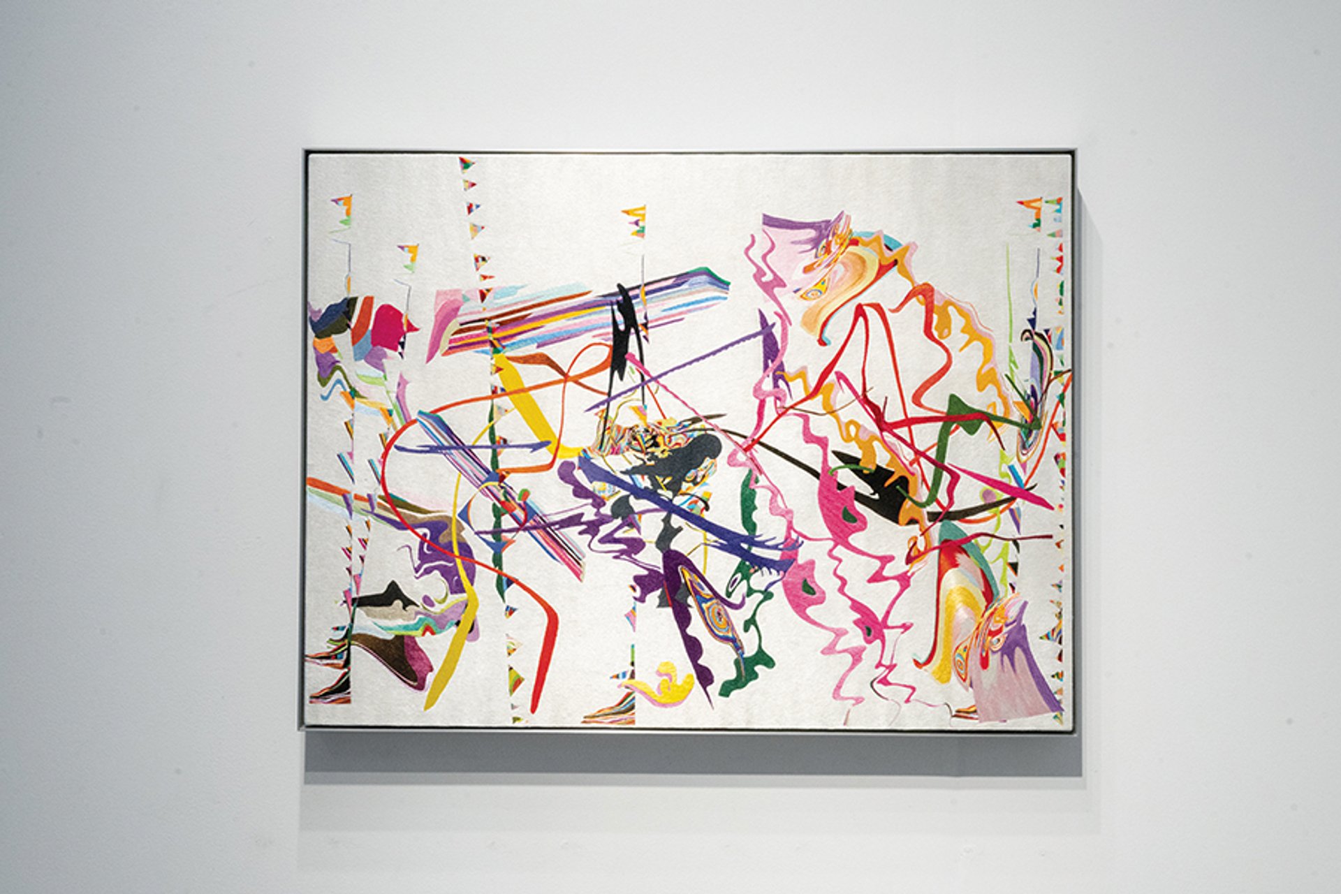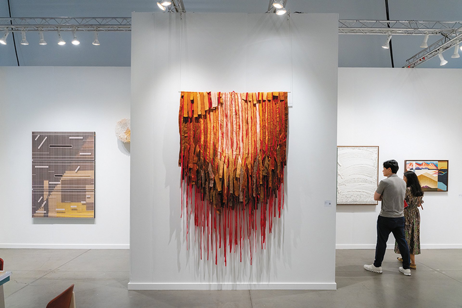 This piece is actually a wearable cape. It is just one of several works by the nonagenarian artist Lee ShinJa on view at Tina Kim Gallery’s stand. Lee trained as a painter, and it shows in the compositions of her fibre-based pieces. Destination I sold prior to the fair’s opening—hopefully, its new owner tries it on at least once.