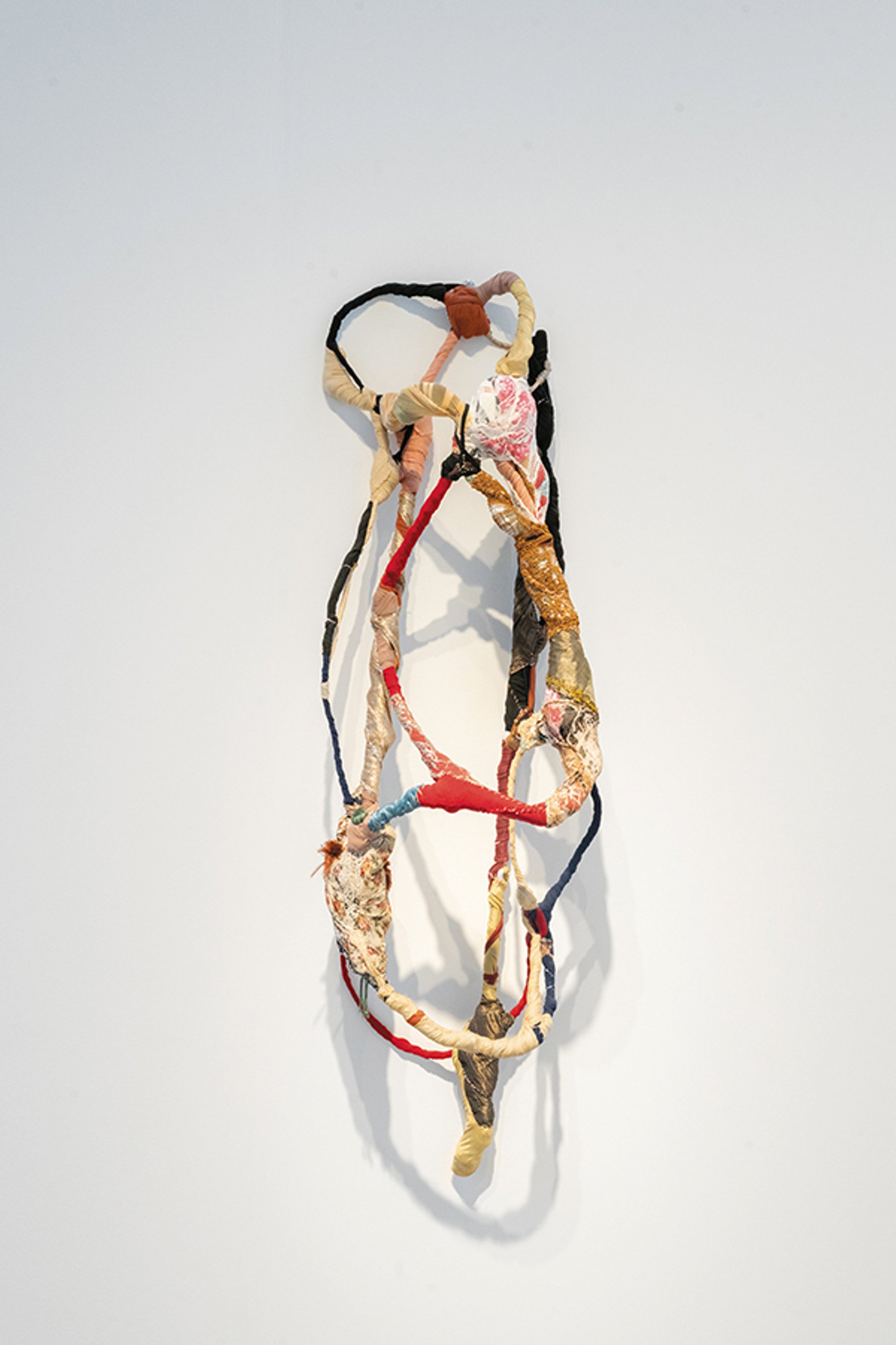 A representative example of Sonia Gomes’s large-scale wrapped-wire sculptures, this piece from her Torção series—Portuguese for “twist”—consists of fabrics given to the Brazilian artist by friends and family, lovingly wrapped and stitched around a wire structure. The work is on reserve for a private collector.