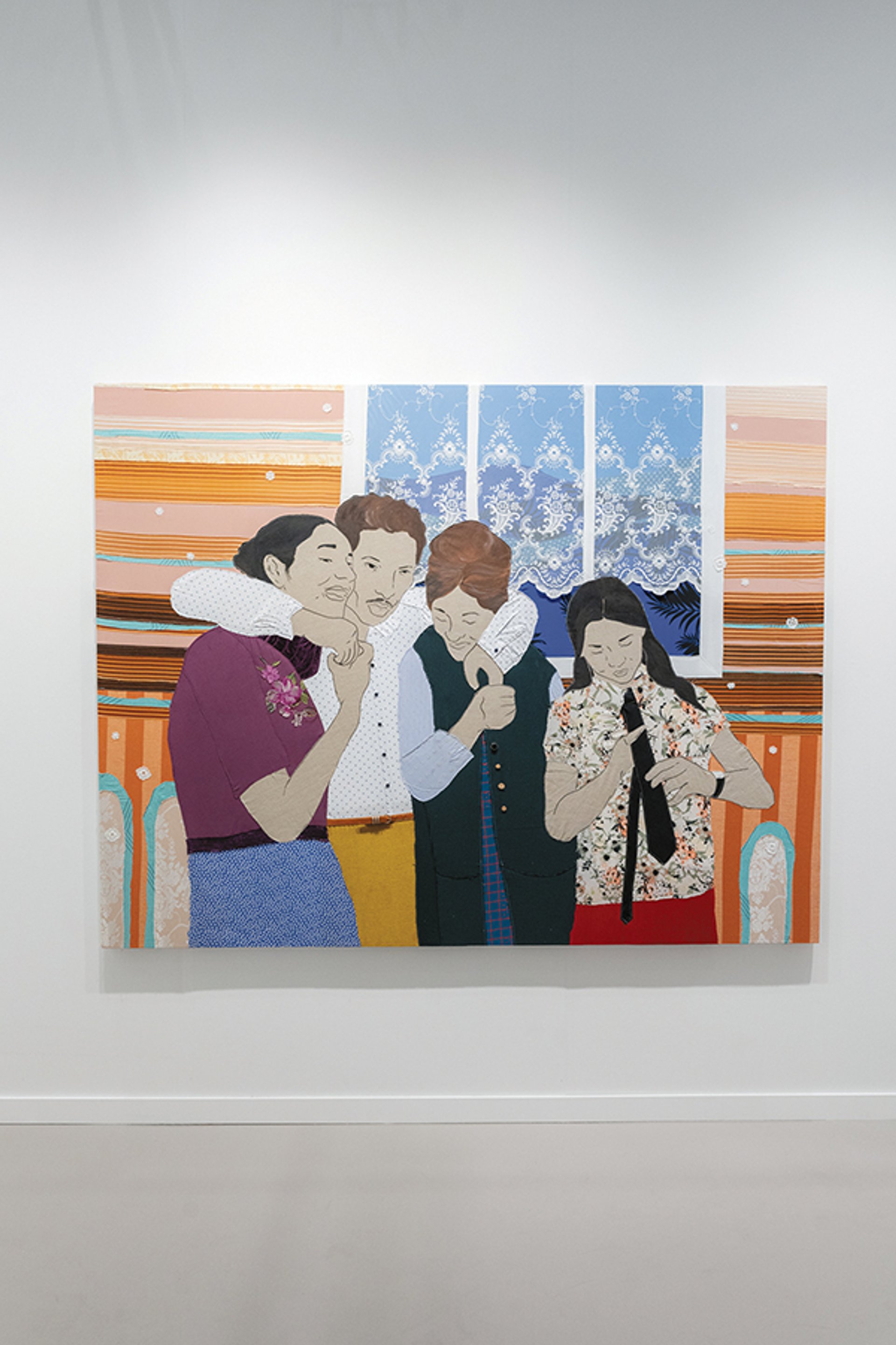 The Roma Polish artist Małgorzata Mirga-Tas crafted this group portrait out of fabric sourced from her own home, her family and her community. “She’s an activist who is revisiting how we talk about Roma people, their history, their persecution during the Holocaust,” says Elly Ketsea, a director at the gallery. The work is on offer in the range of $50,000 to $100,000.