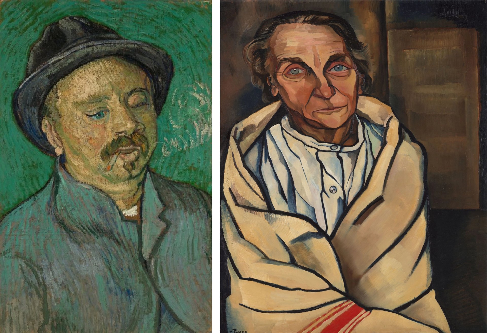 Van Gogh’s Portrait of a One-eyed Man (probably October 1889, not in the exhibition), depicting a fellow “companion in misfortune”, and Toorop’s Patient of the Willem Arntsz House (March 1924)