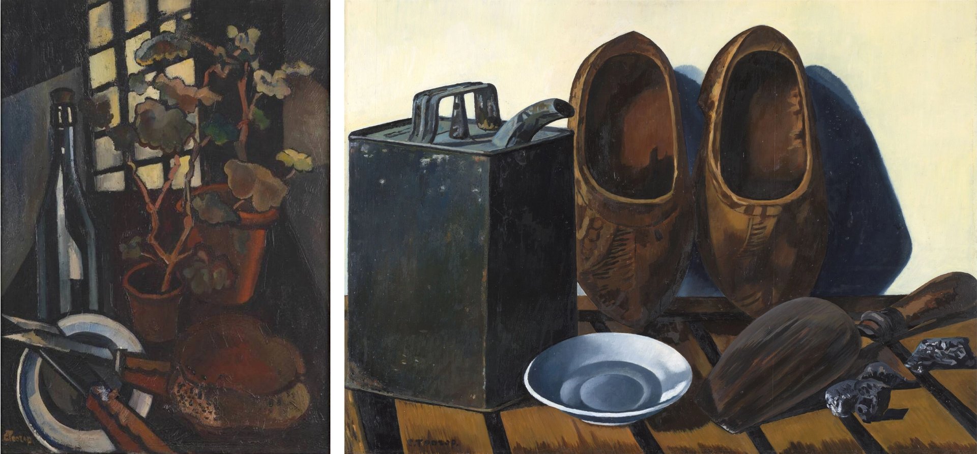 Toorop’s Still Life with Geraniums, Bottle, Plate with Knives and Bun (1920) and Still Life with Oil Can and Clogs (1946-49)