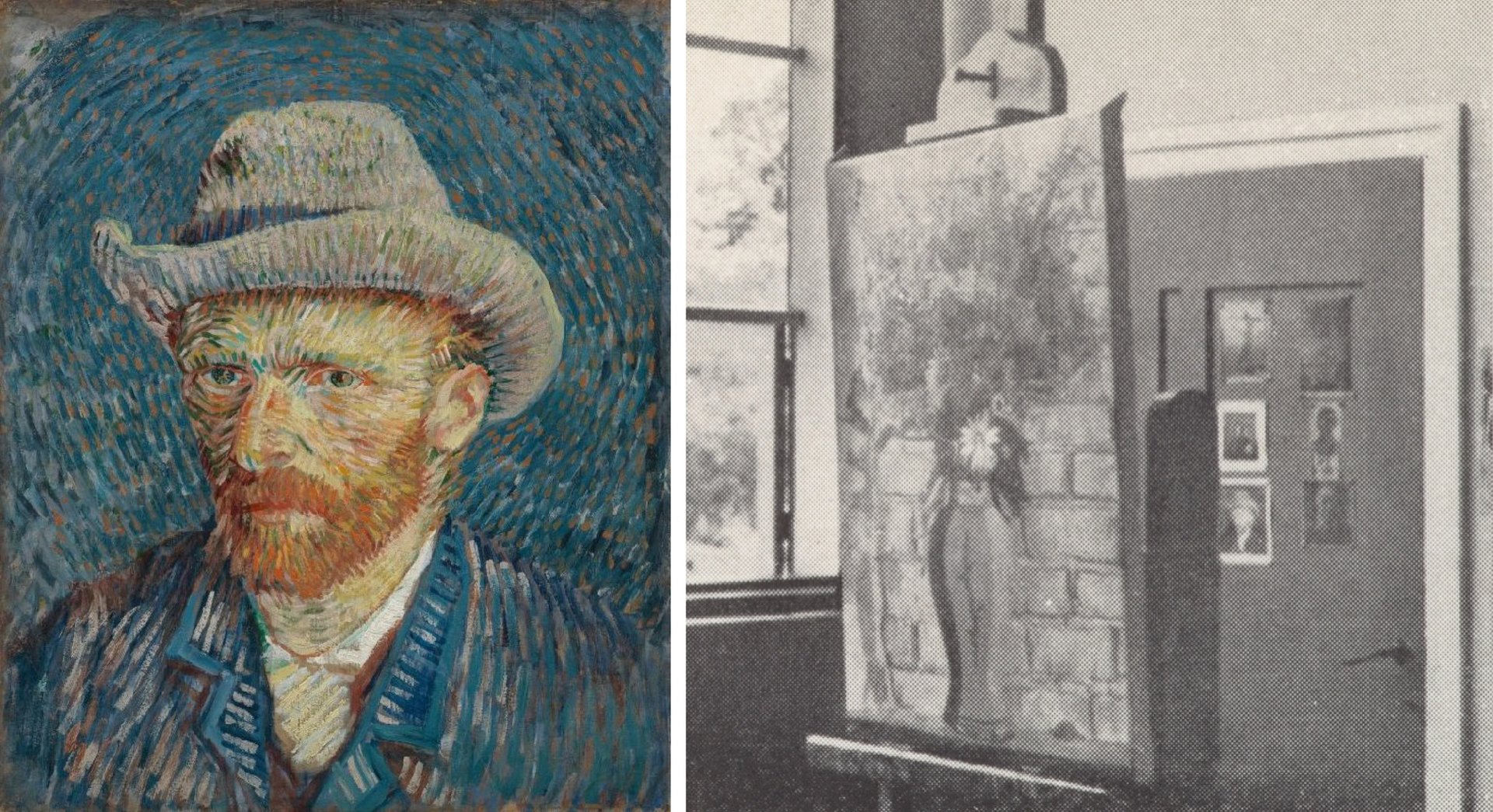 Van Gogh’s Self-Portrait with Grey Felt Hat (September-October 1887) and photograph of Toorop’s studio (1951)