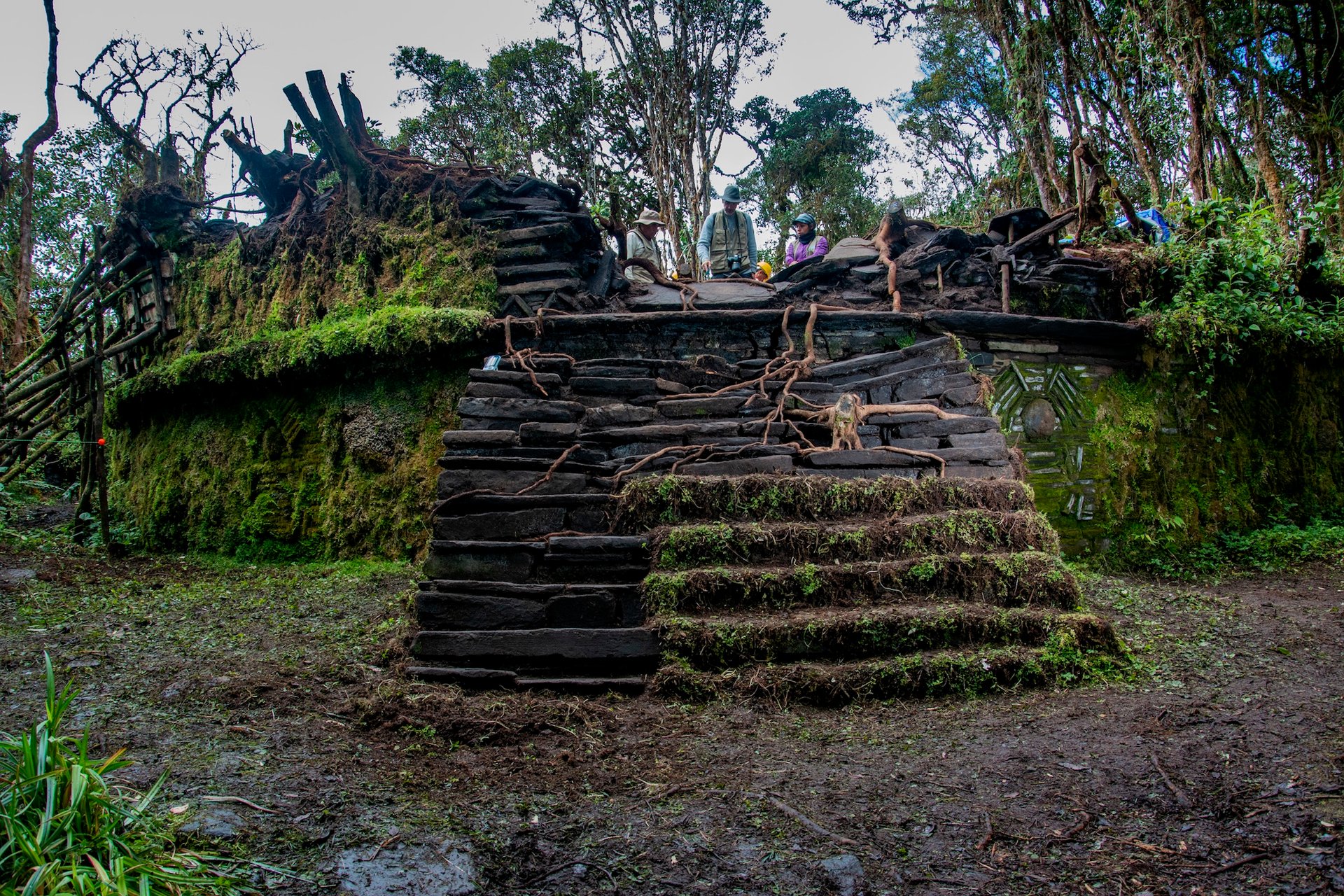 A partially excavated staircase at a structure at Gran Pajatén during a 2024 expedition Courtesy World Monuments Fund
