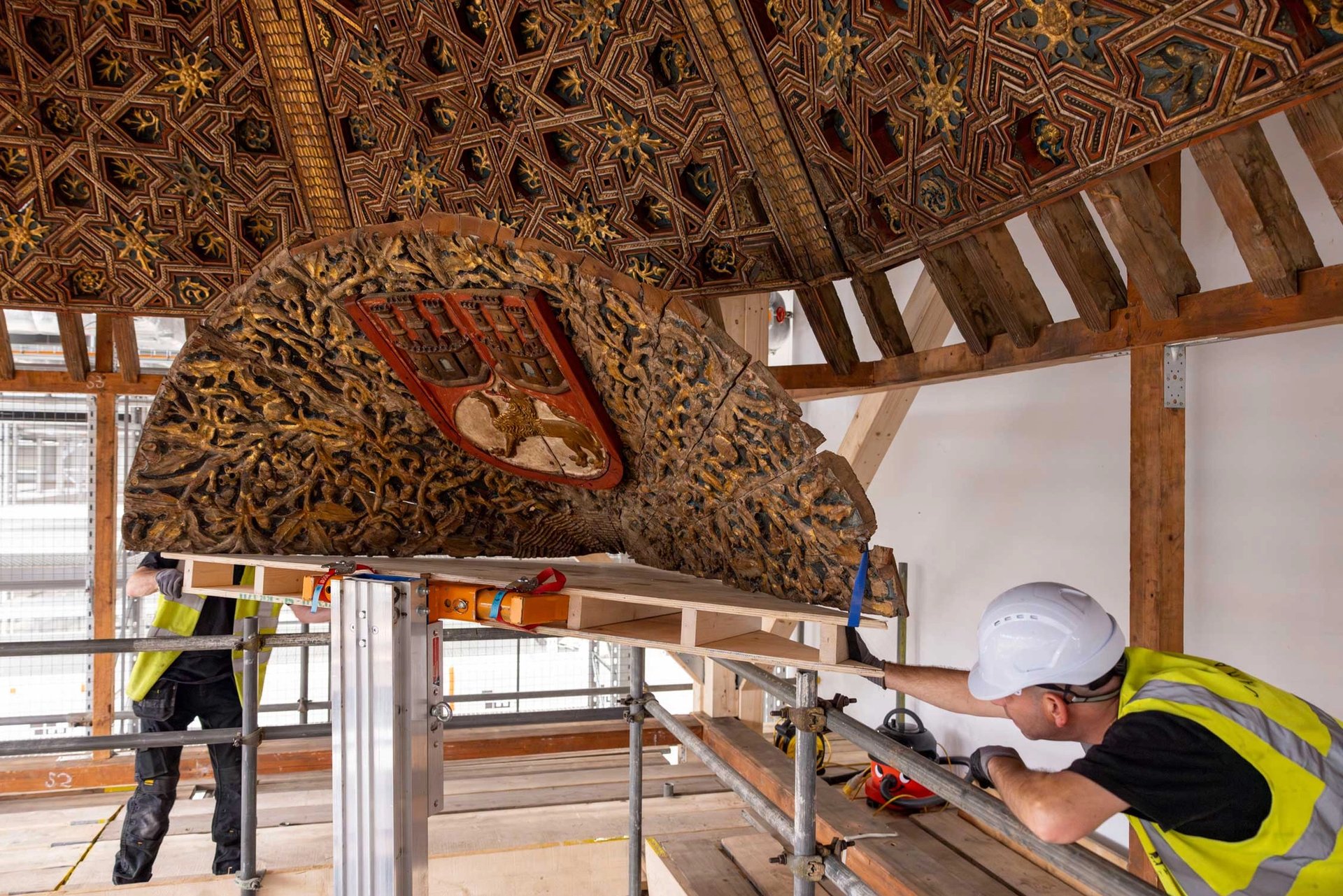 A 15th-century palace ceiling is one of six built-in objects at the depot
