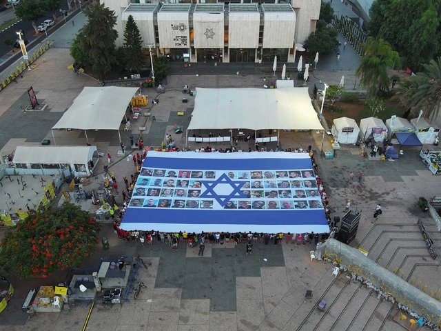 In addition to the manifold reasons to protest, Matatyahu described needing to do something that recognised the stark transition from walking through Hostages Square to the museum each morning, and then continuing to work on exhibitions and programmes. Plastered with bumper stickers, banners, tents and various installations related to individual hostages and the hostage situation at large, the plaza that was once an open space filled with modernist sculptures is now weighted.