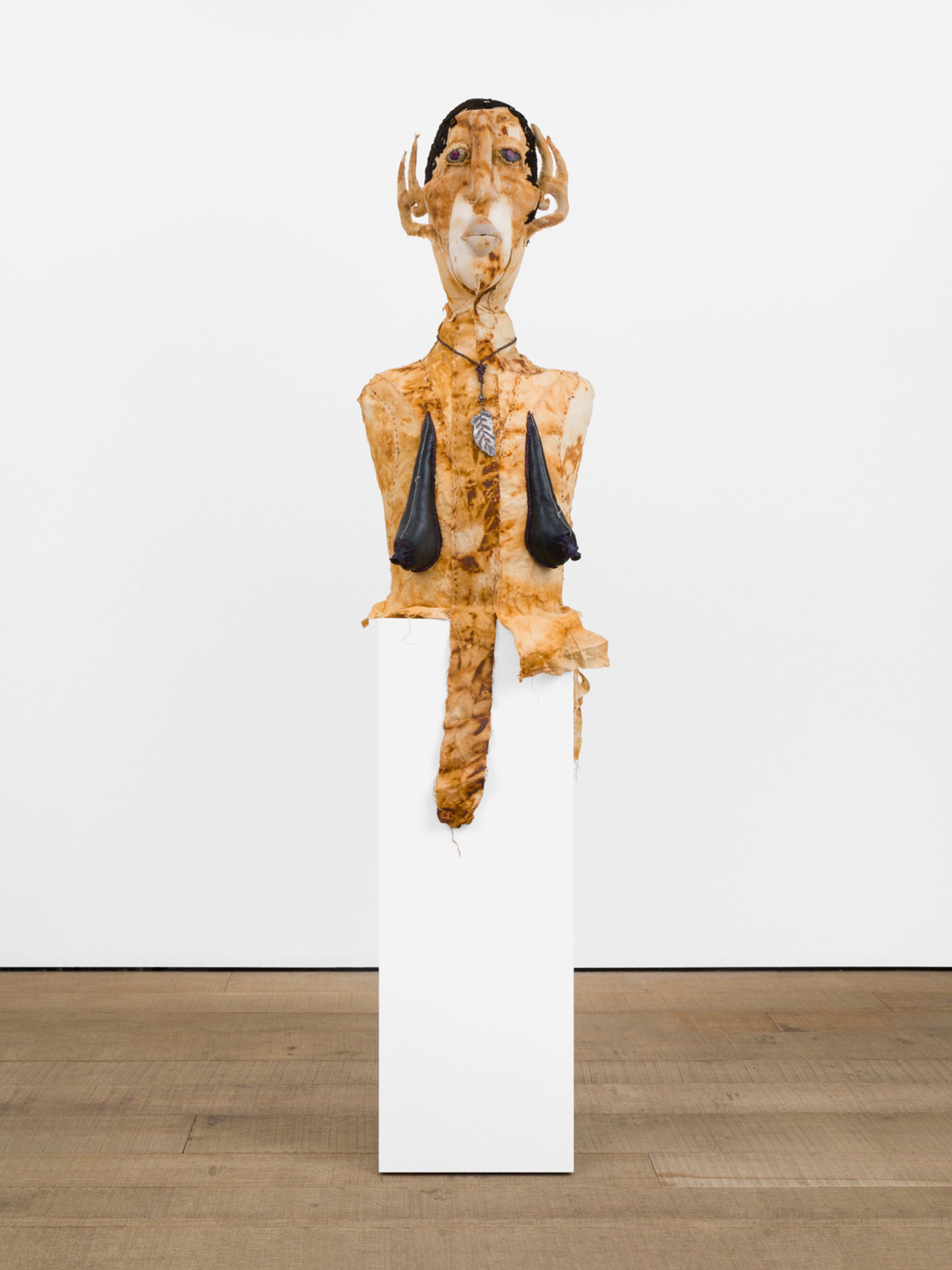 In this disquieting array of figurative sculptures, ceramics and masks, Francis Upritchard weaves together references and connections to antiquity, folklore and the natural world. Mythological references proliferate, whether in ceramic vases, jars and urns glazed with scenes from classical myths or in her sculptures of the gorgon Medusa and the sirens who lured sailors to their death, which Upritchard renders even more ambiguous by being made from balata, a flesh-like natural rubber that needs to be quickly manipulated into shape whilst submerged in water. Less culturally specific are the series of fabric masks, which hover between costume, relic and puppet to evoke the theatricality of multifarious ancient rituals from across the globe.