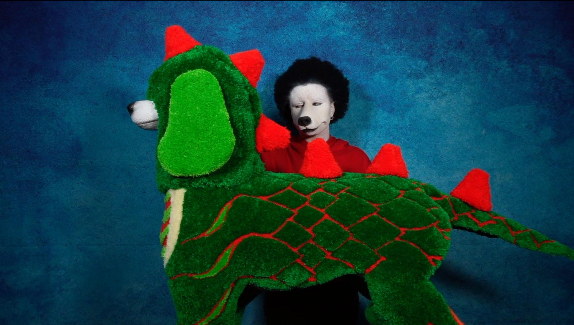 The Glasgow-based British Zimbabwean artist Tulani Hlalo creates an electric blue satin-draped environment reminiscent of a dog show competition tent, as she channels the subculture of competitive dog grooming as an unorthodox means to explore how identity is both defined and mutable, along with the challenges of navigating two different cultures. Four new wall-mounted textile works take the form of hand tufted rugs in the shape of flattened dog pelts, which in turn are bizarrely embellished with images of animal otherness, whether a lobster with a strangely pigmented pink-and-blue carapace or a zebra with spots rather than stripes. One of these ‘grooms’ even takes the form of Björk’s infamous swan dress, once decried but now iconic, while another sports the spangles that recall Hlalo’s own childhood leotard as a competitive gymnast. In an accompanying film, the artist assumes the role of a prize-winning poodle, complete with claws, tail and matching cuffs as well as an oversized rosette—definitely Best in Show…