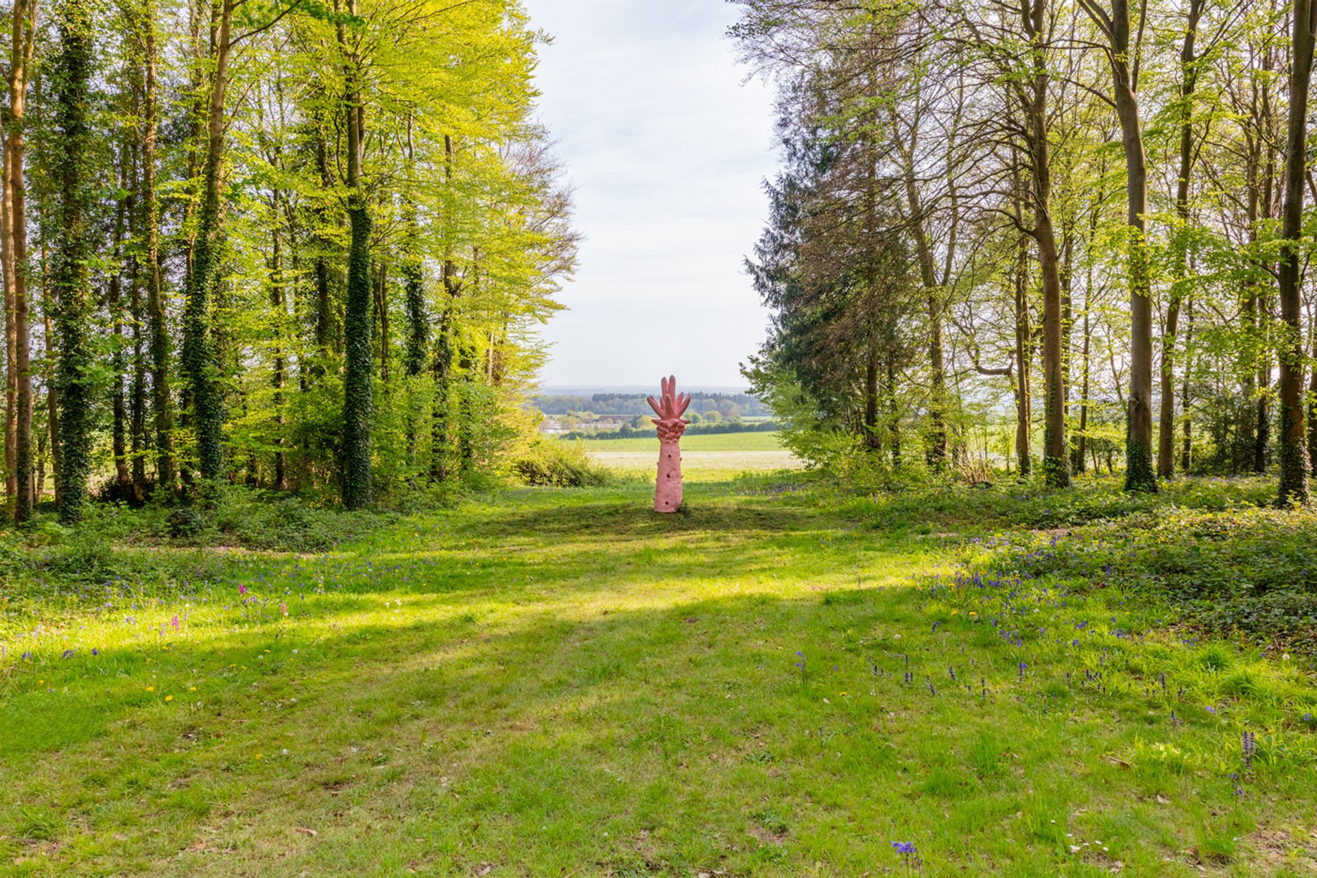 Gallagher and Pearson have worked closely together from early on, seeing the developing landscape as a place where visitors can encounter art in an act of serendipitous discovery. The planting has been planned to allow for 24 two-week botanical highlights across the site and through the year. This spring, newly planted magnolia trees have flowered; the long-established blanket of bluebells has spread itself under the forest canopy; and a grove of cherry has blossomed up against the historic flint wall that snakes elegantly along the rise and fall of the site's northern boundary.