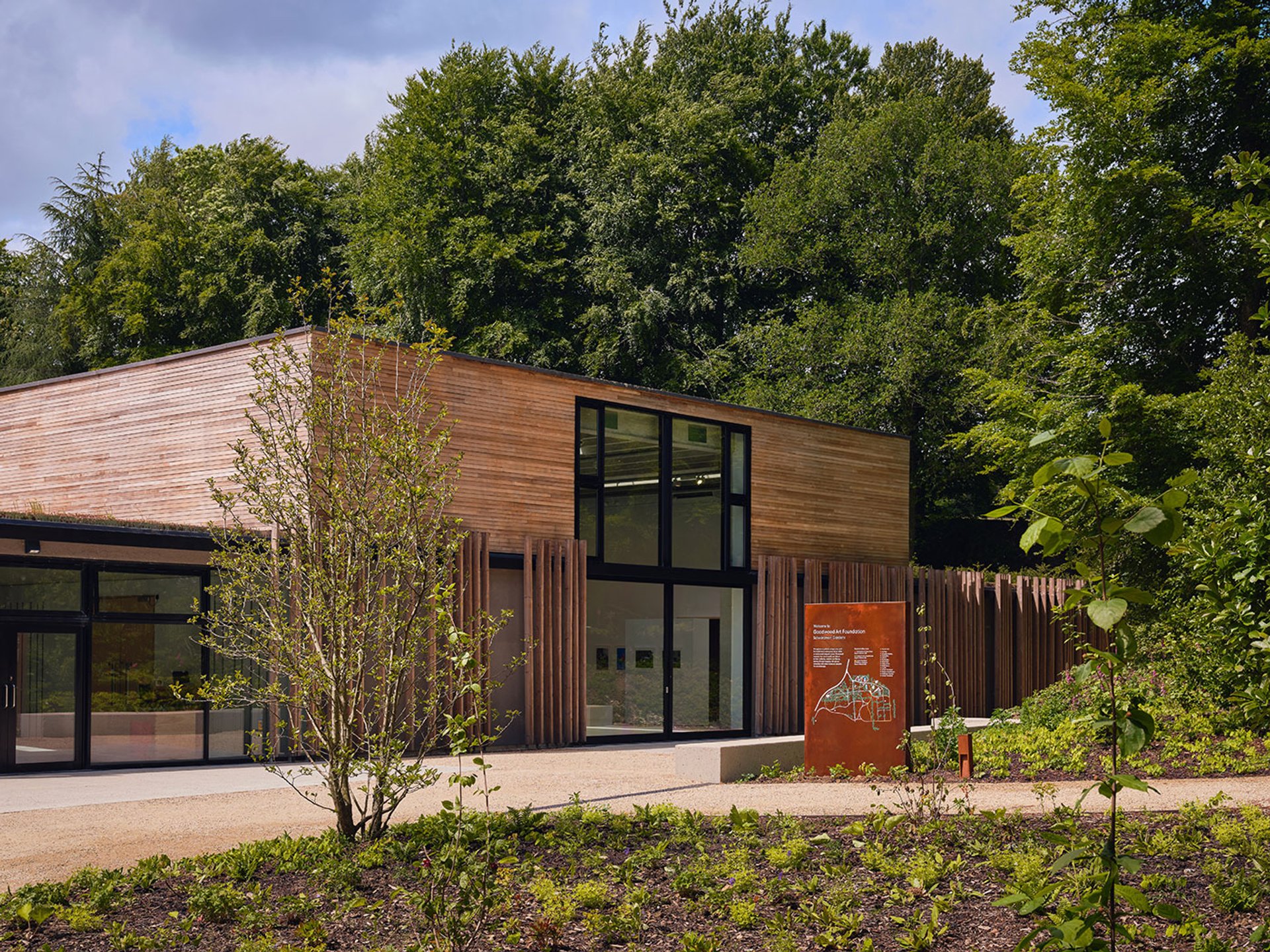 The Gallery, the refurbished main exhibition space, in the upper woodland at the Goodwood Art Foundation Photograph by Jonathan James Wilson, courtesy of Goodwood Art Foundation