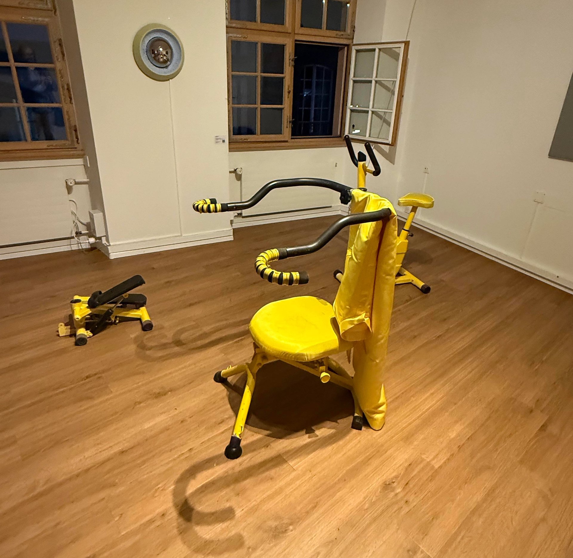 Visitors to Basel Social Club this week can get fit, thanks to the Saudi artist Ahaad Alamoudi, who is showing a series of outdated, lurid yellow gym machines, sparking debate about self-improvement and why we feel the need to pump iron. A weighing scale, rowing machine, exercise bicycle, stepper and chest press—all acquired from Haraj, Jeddah’s famed thrift market, in 2018—reflect shifting ideas around health, wellness and progress, according to ATHR Gallery, which represents Alamoudi. Basel Social Club is offering plenty of lifestyle options, such as a hair salon courtesy of the artist Alberto Papparotto and tattoos from Stick n’ Poke (so go get a do and some tats).