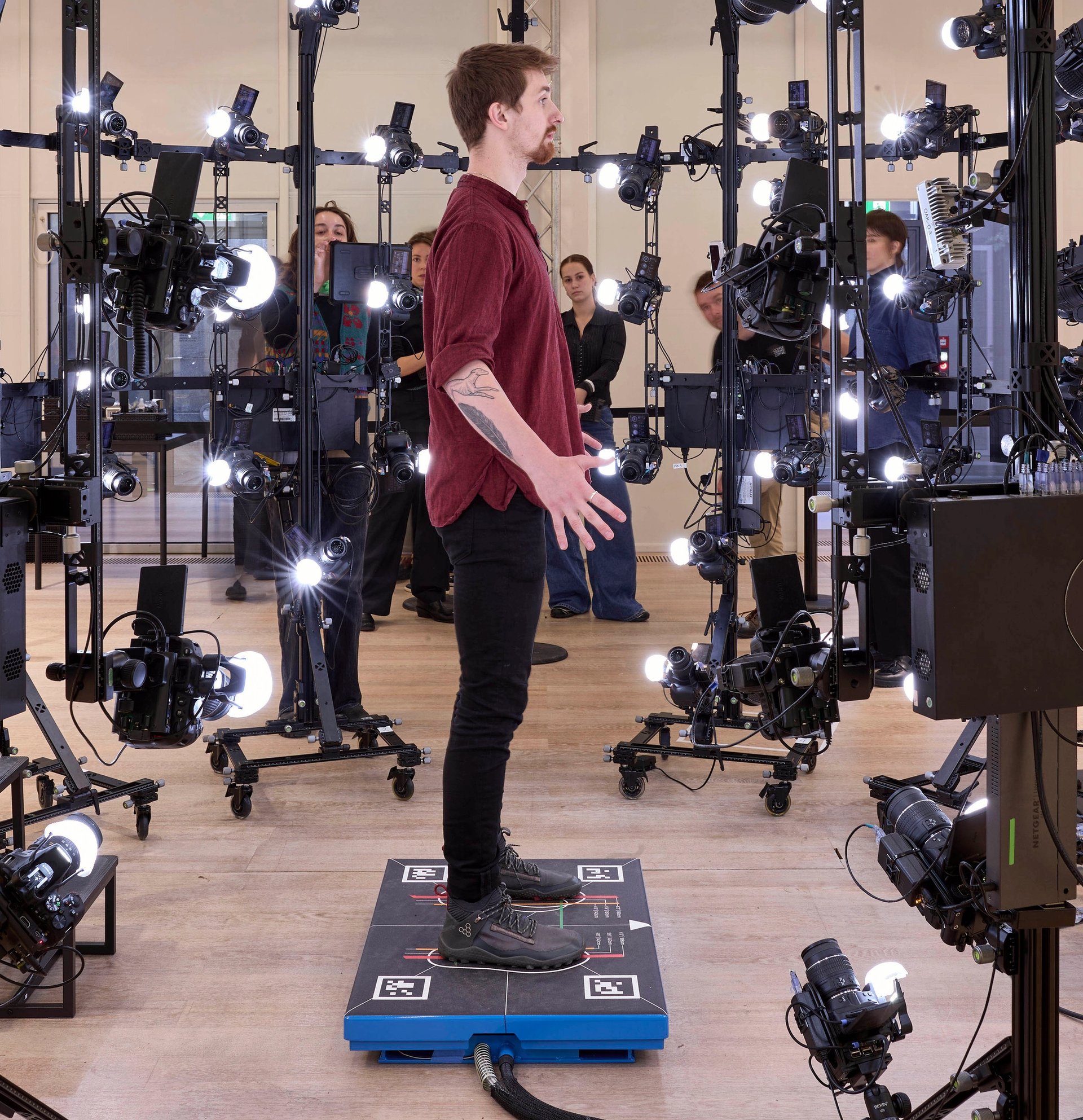 Jordan Wolfson: Basically, you switch bodies and embody someone else. When you see yourself, you’re wearing your partner. I guess the work starts there: what it feels like to embody another person, which is quite strange. The technology exists in pieces. It’s like an assembly line—from a photogrammetry scan, to creating the avatar, to rigging it and allowing an individual to wear it within an AI motion-capture setting.
