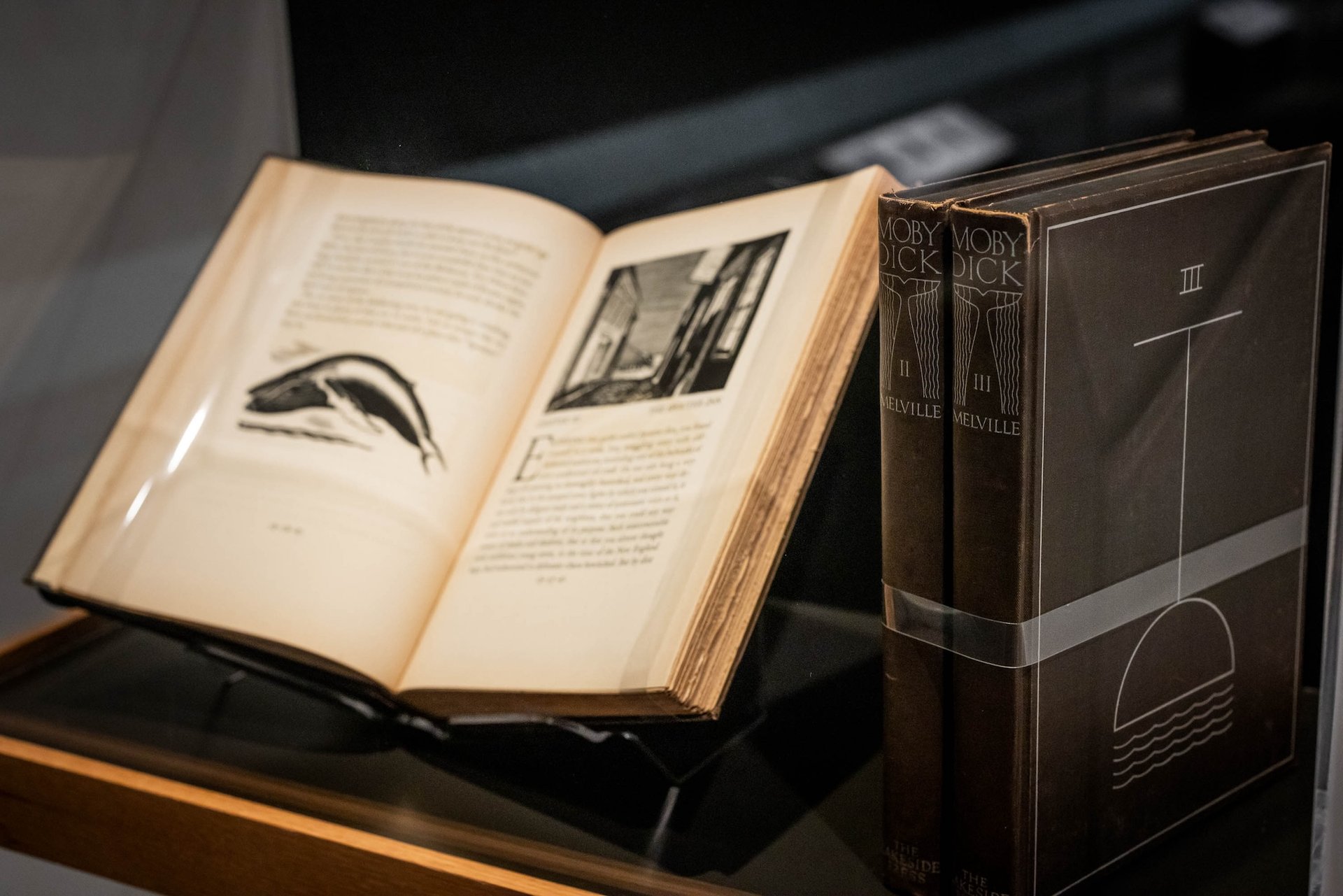 Copy of a 1930 three-volume edition of Herman Melville’s Moby-Dick; Or, The Whale (1851) Courtesy the Mystic Seaport Museum, Connecticut