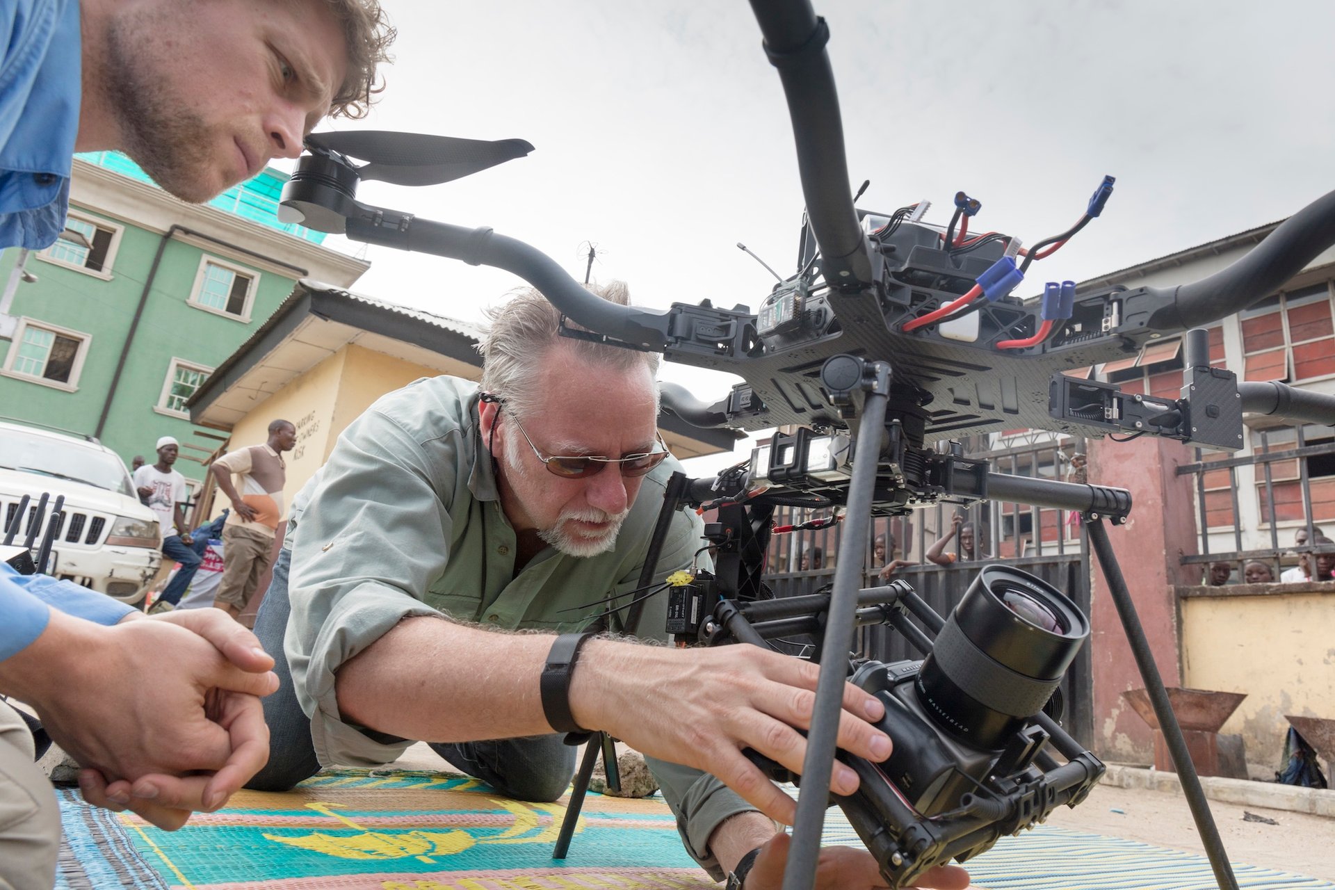 Drone preparation, Burtynsky in Lagos, Nigeria, 2017 © Edward Burtynsky Photography