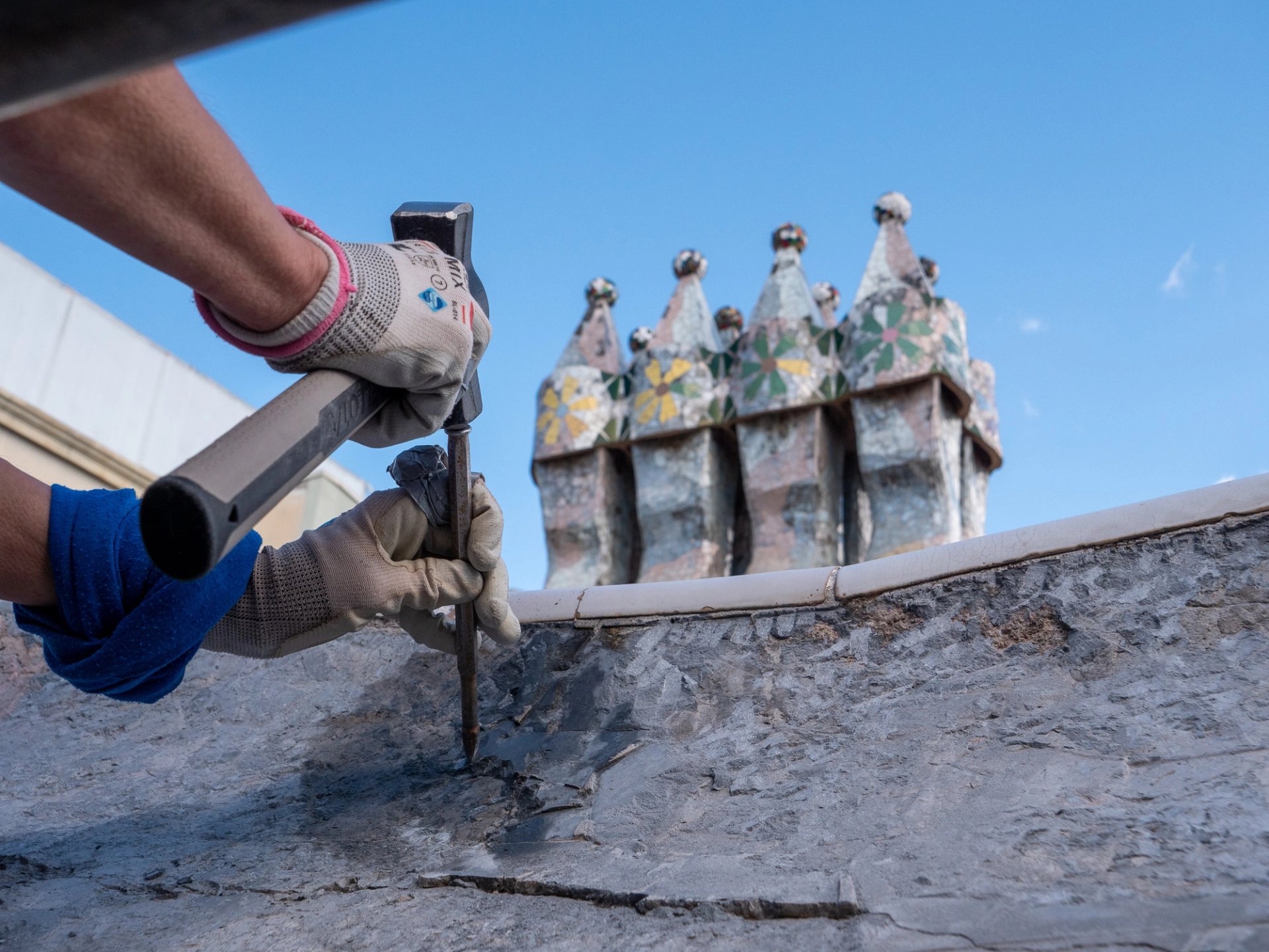 The trencadís being restored © Casa Batlló