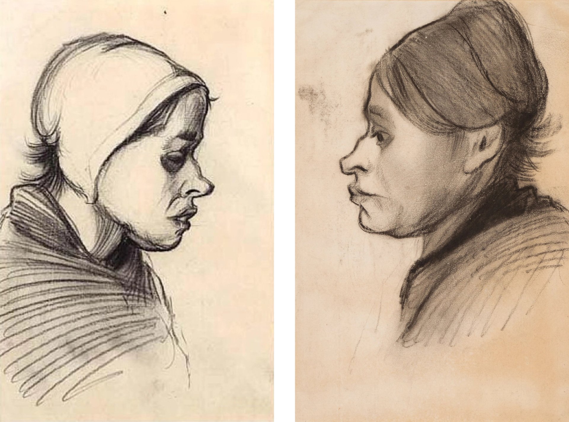 The two drawings exchanged with Visser represented a pair, both depicting the profile of a peasant woman. Dating from December 1884-May 1885, they were done in the southern Dutch village of Nuenen, where Van Gogh was living with his parents. The sitter remains unidentified, although she might well be Gordina de Groot.