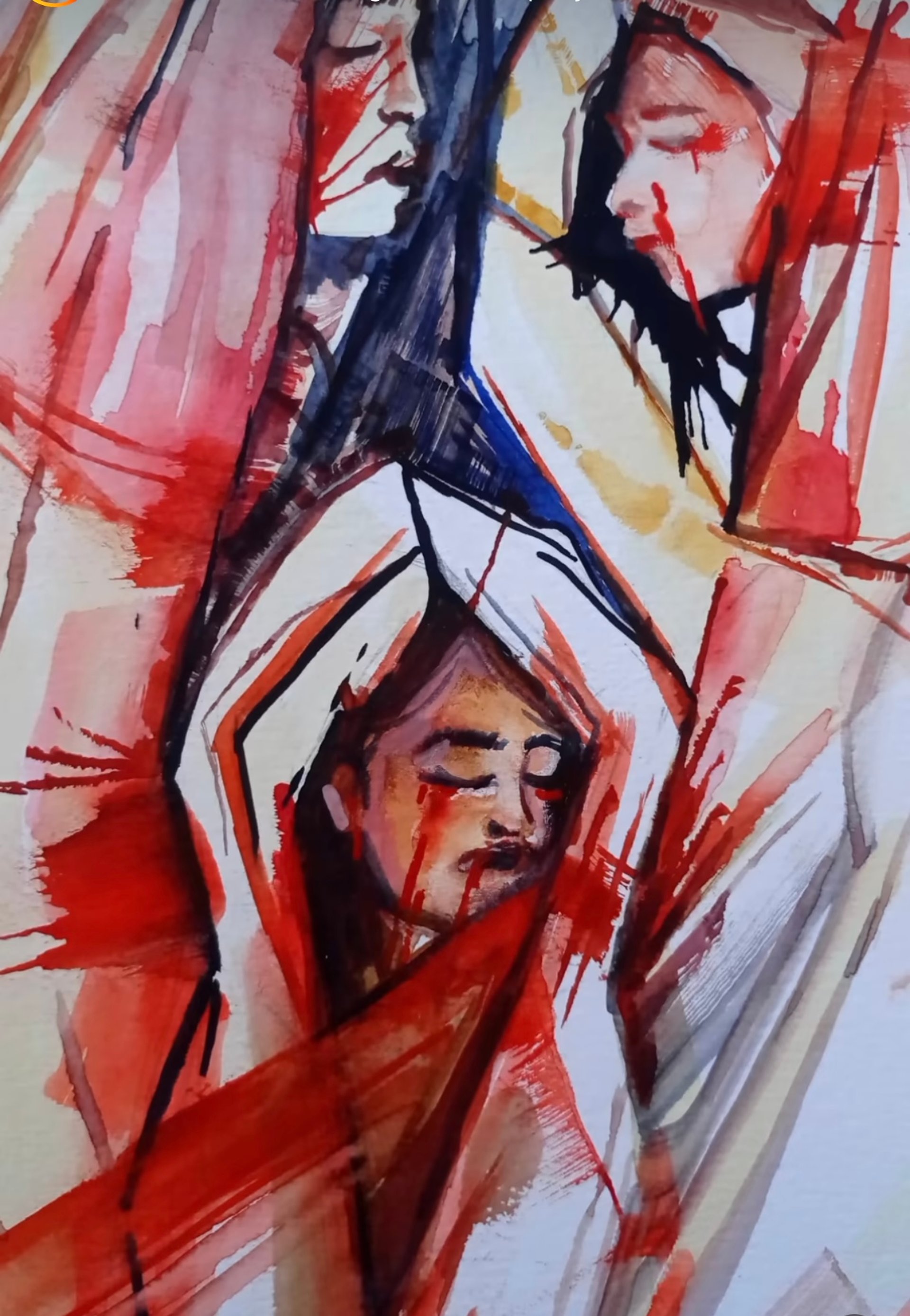 Frans’s final Instagram post, shared ten days before her death, depicts three dead women, with the colour red splashed across their bodies. Her caption reads, “The blood of the martyr. Blood scented with cardamom.” After her death, friends and others online shared an image of her bloodied body alongside the artwork, drawing chilling parallels.