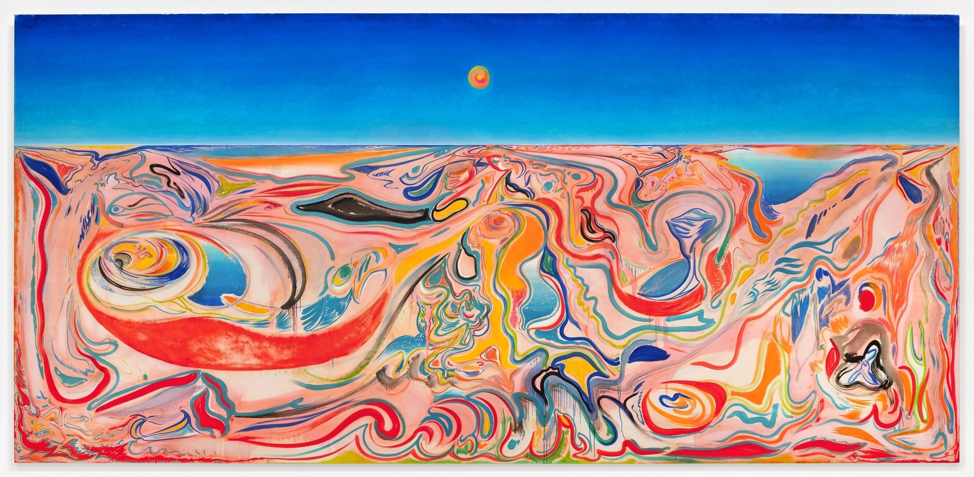 The exhibition Black Earth Rising brings together thirteen African diasporic, Latin American and Indigenous origin native American artists who Eshun describes as “artists whose origins lie culturally and genealogically within the Global South or within communities of colour”. This intergenerational lineup includes nonagenarian British Guianan artist Frank Bowling, the late Native American artist and curator Jaune Quick-to-See Smith and British Nigerian artist Yinka Shonibare. They are joined by Kenyan American Wangechi Mutu, along with younger artists such as Cuban born, Miami-based Alejandro Piñeiro Bello; Dominican Republic born, New York based Firelei Baez; and the Brooklyn based photographer Tyler Mitchell.