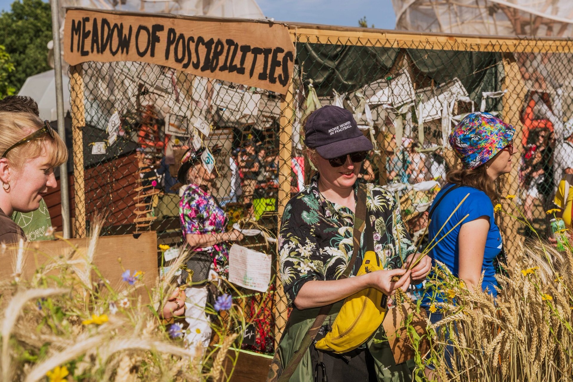 However, one stage in the southeast corner of the festival went one step further this year in a bid to create a vision for an alternative future: one that prioritises nature, community and practical solutions to some of the crises we are facing as a planet. Instead of the usual hoardings and sculptures, festival-goers who found themselves at Shangri-La were greeted with allotments, plants and seeds to take home and sew—all brought together under the banner of The Wilding.