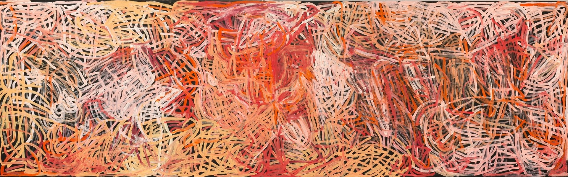 Emily Kam Kngwarray’s sprawling 5m-wide Yam awely was painted in 1995, shortly before her death © The artist/Copyright Agency; Licensed by DACS 2025
