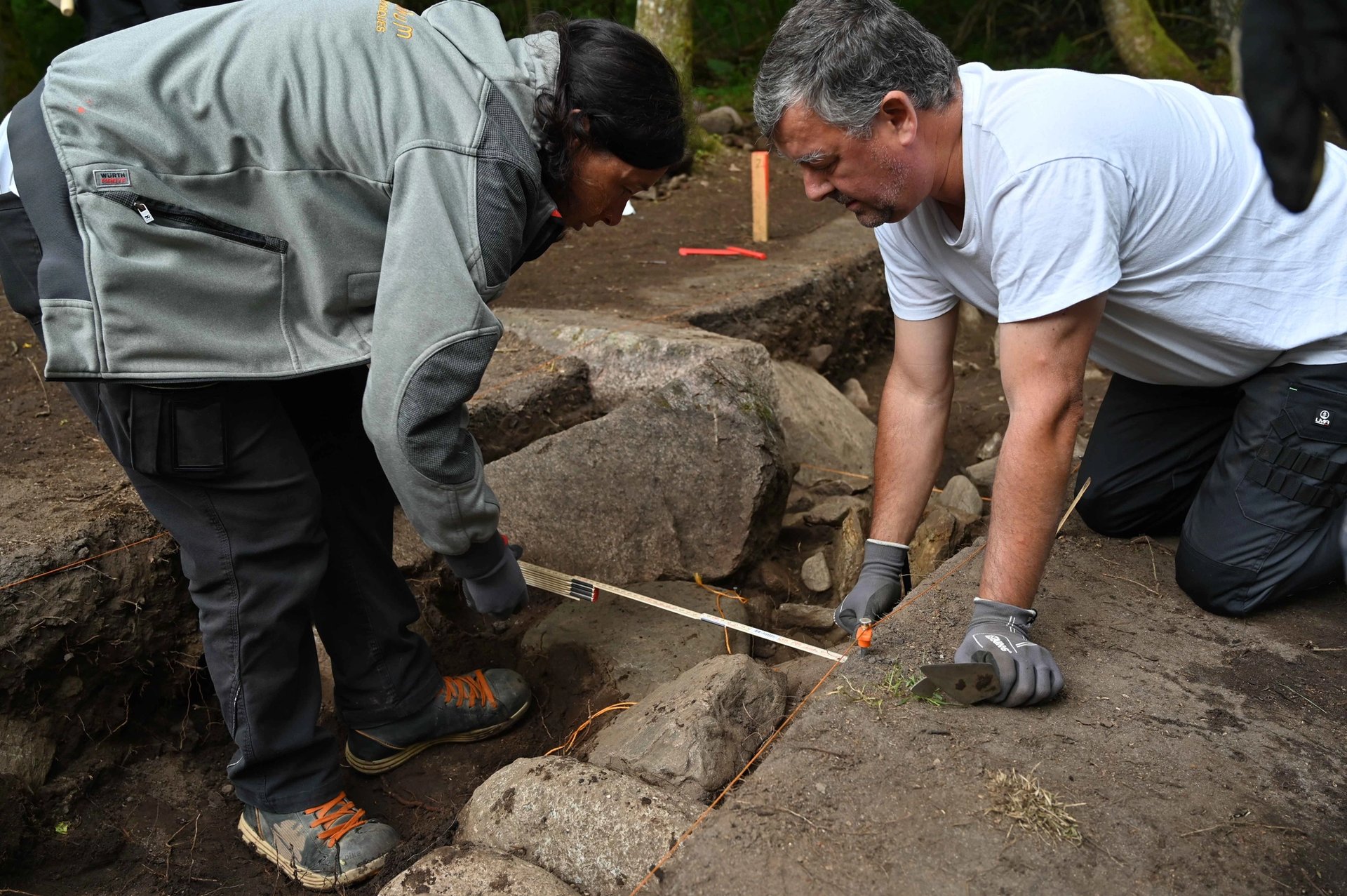 Audrey Blanchard and Jean Noel Guyodo from the University of Nantes, during the excavation of Le Plasker