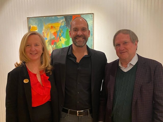 Attendees on Zhu's balcony at the opening for Amanda Ba's Experiments: Private Paintings show. Courtesy Market Gallery