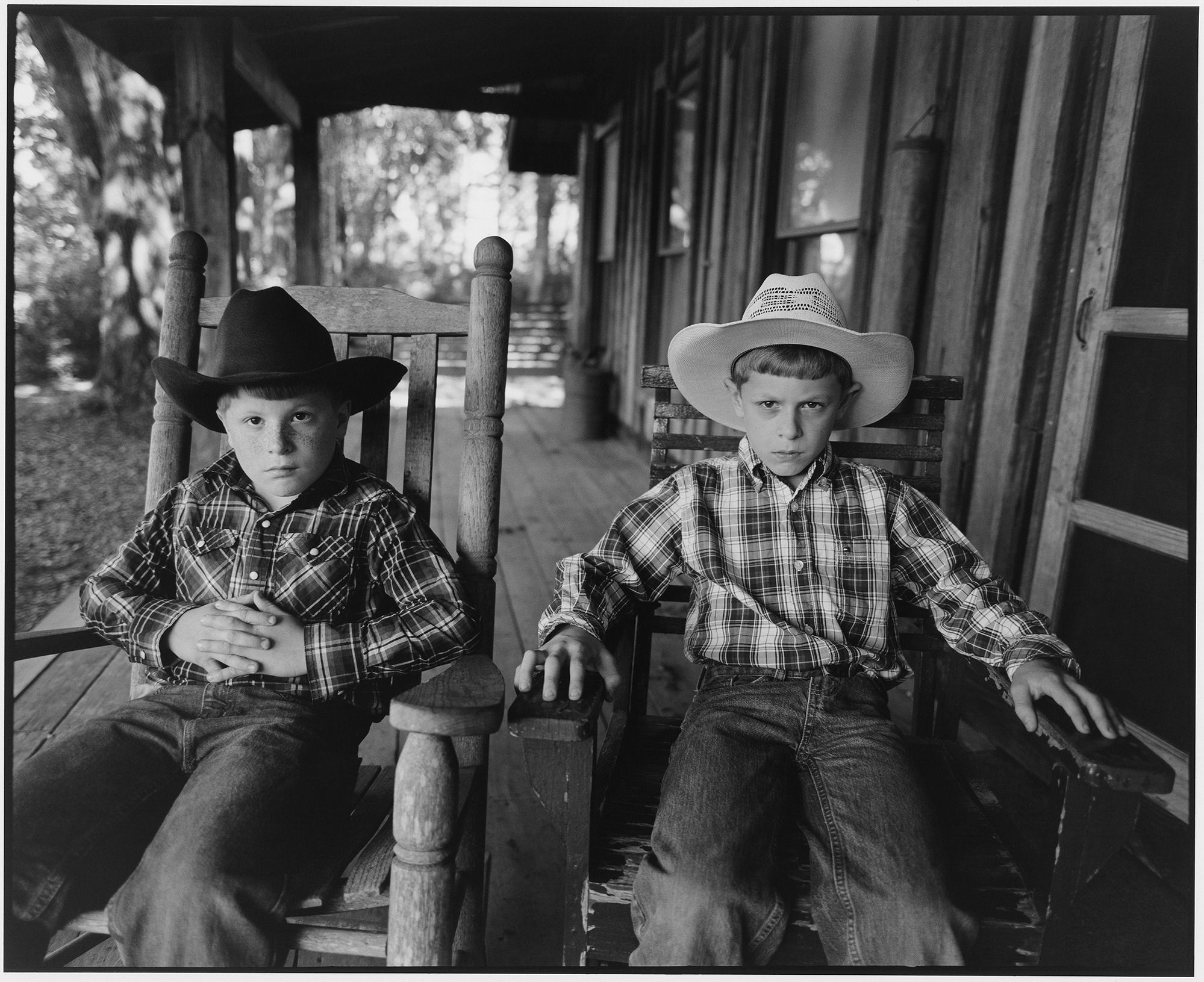 The photographer Trenity Thomas was only six years old when he evacuated. His pictures in the exhibition show familiar New Orleans scenes, like shotgun house porches, second line street parades and the famous Café Du Monde.