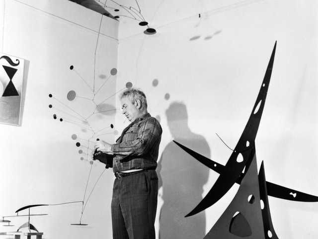 Calder was born in 1898 in Philadelphia and began his career in the 1920s making three-dimensional wire sculptures. He is credited with inventing the mobile, a suspended abstract sculpture that slowly moves in space. From the 1950s onwards, Calder increasingly used bolted steel plates to create large-scale outdoor sculptures, which are now found throughout the world.