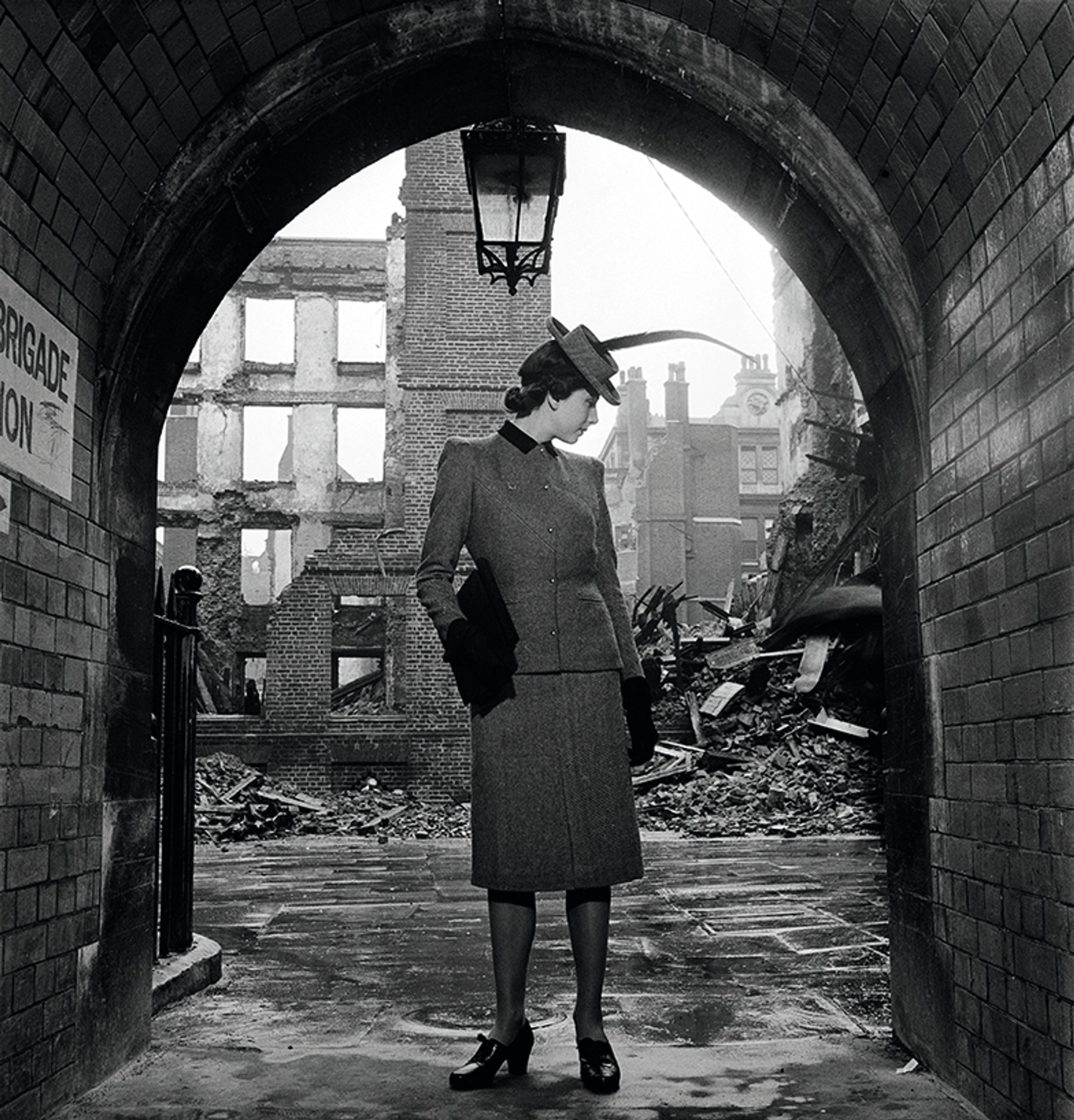 Miller’s 1941 image of model Elizabeth Cowell, set against the backdrop of a bombed-out London © Lee Miller Archives