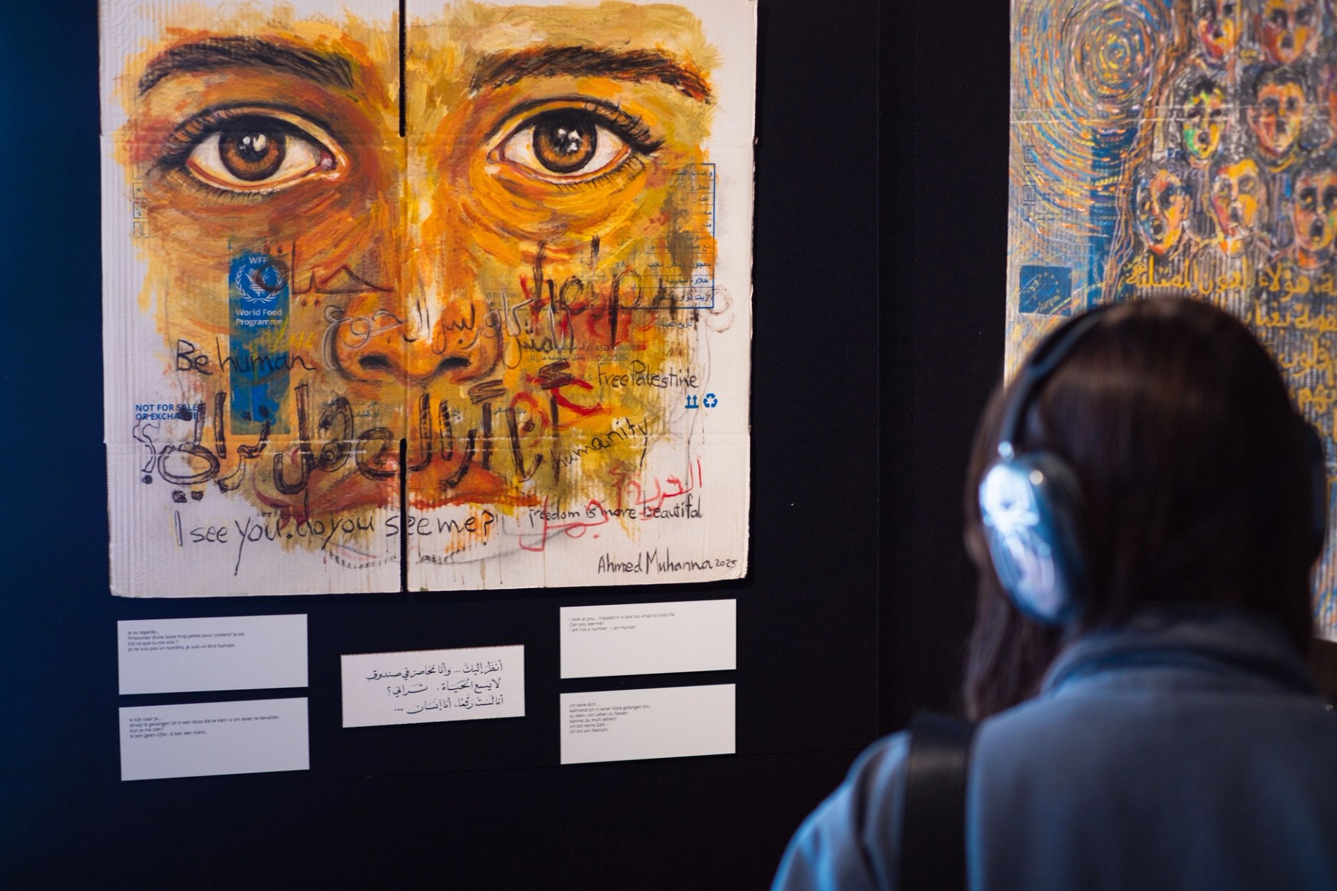 The United Nations World Food Programme (WFP) has launched a travelling exhibition of paintings by the Gazan artist Ahmed Muhanna, who uses humanitarian aid boxes as his canvas. Gaza: Stories of Hope and Resilience, featuring more than 40 works, opened on 15 September in Brussels and will tour nine European cities before closing on 23 October.