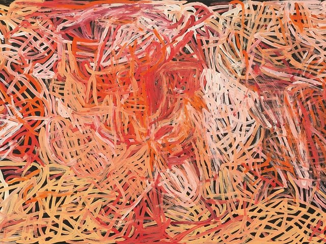 Born in 1914 in Alhalker Country, home to the Anmatyerr people and located in the Northern Territory of Australia, Kngwarray was a ceremonial artist, storyteller, cultural custodian and matriarch who spent much of her adult life working on cattle stations built by white settlers who renamed the surrounding area Utopia. It was only in her mid-70s that she first put paint to canvas, but Kngwarray was propelled to art world stardom almost overnight after her first painting, Emu Woman (1988-89), was shown in Sydney in 1989, drawing critical acclaim and beginning an extraordinarily productive seven years in which it is estimated she painted around 2,000 works of trusted provenance.