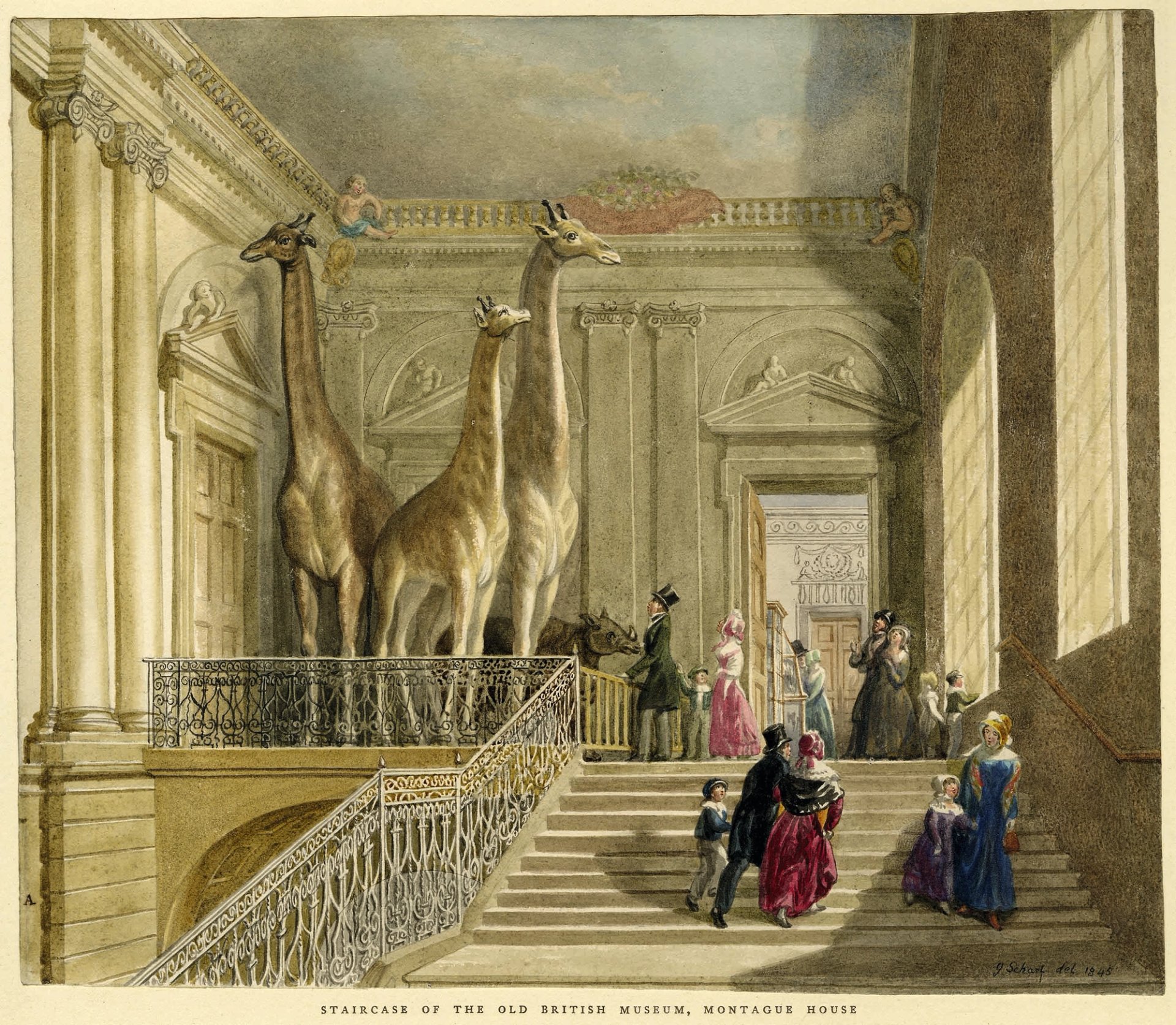 Stuffed giraffes were in residence at Montagu House from the 1770s © The Trustees of the British Museum