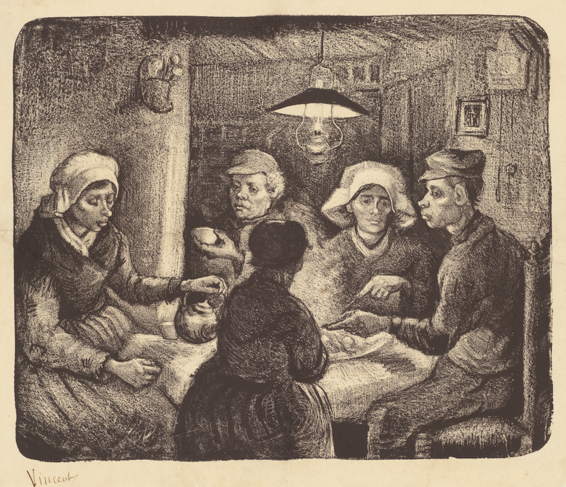 Van Gogh’s lithograph of The Potato Eaters (April 1885)