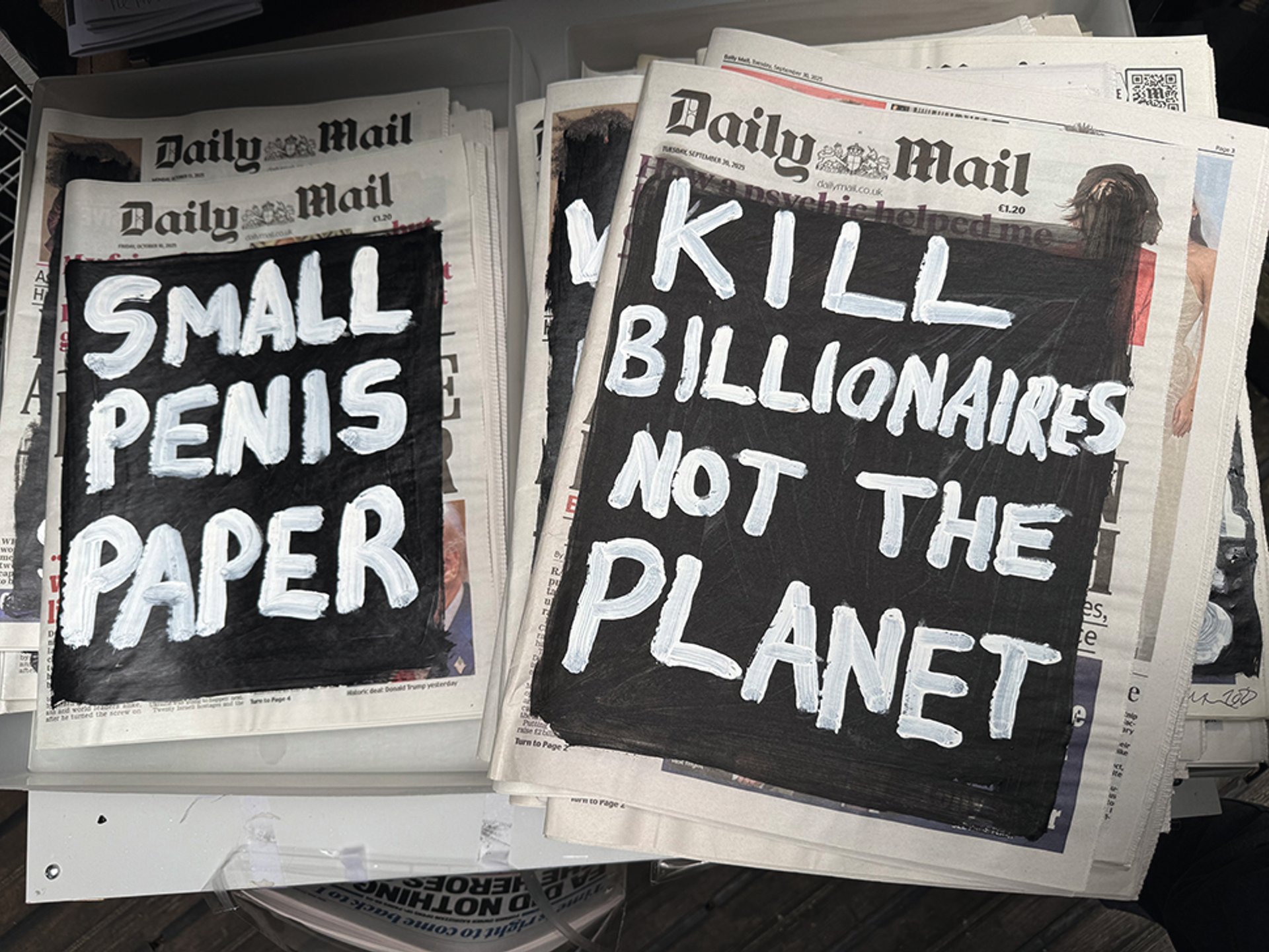 The performance artist Artist Taxi Driver plastered one-liners over the UK newspaper Daily Mail