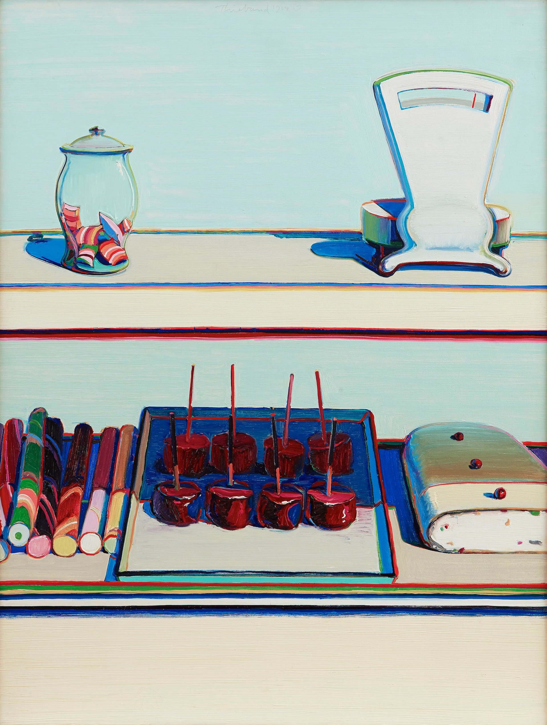 “Extraordinarily painterly”: reproductions of Thiebaud’s works, like Candy Counter (1969), can lack the depth and richness of the originals, the exhibition’s curator says © Wayne Thiebaud/VAGA at ARS, New York and DACS, London 2025
