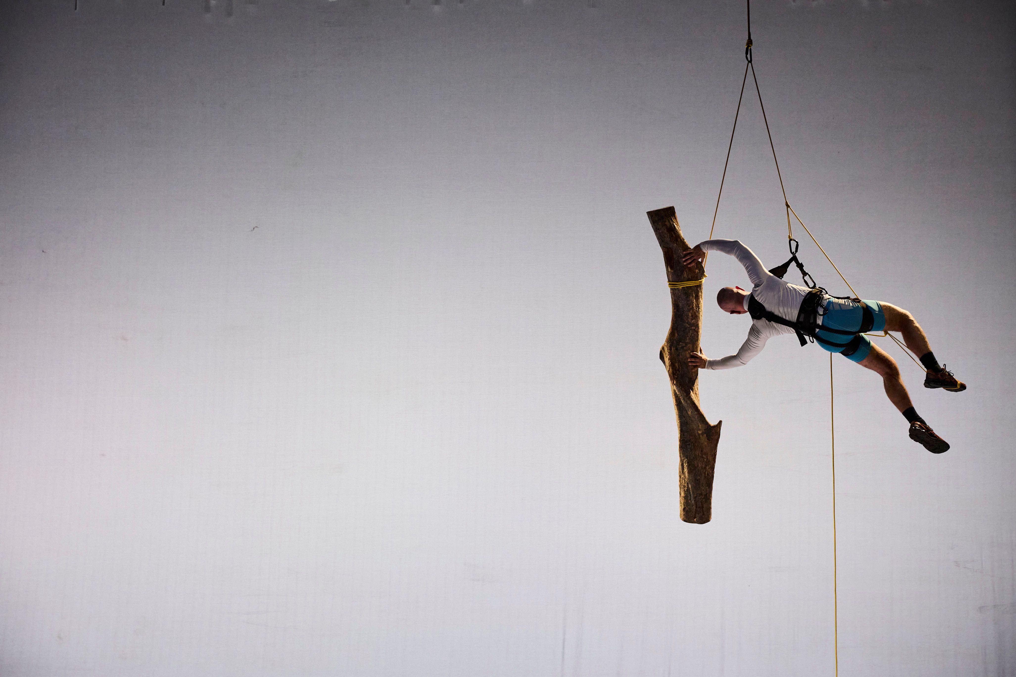 Luke George, Fell, involves the artist being suspended for an hour beside a log equal to his own weight