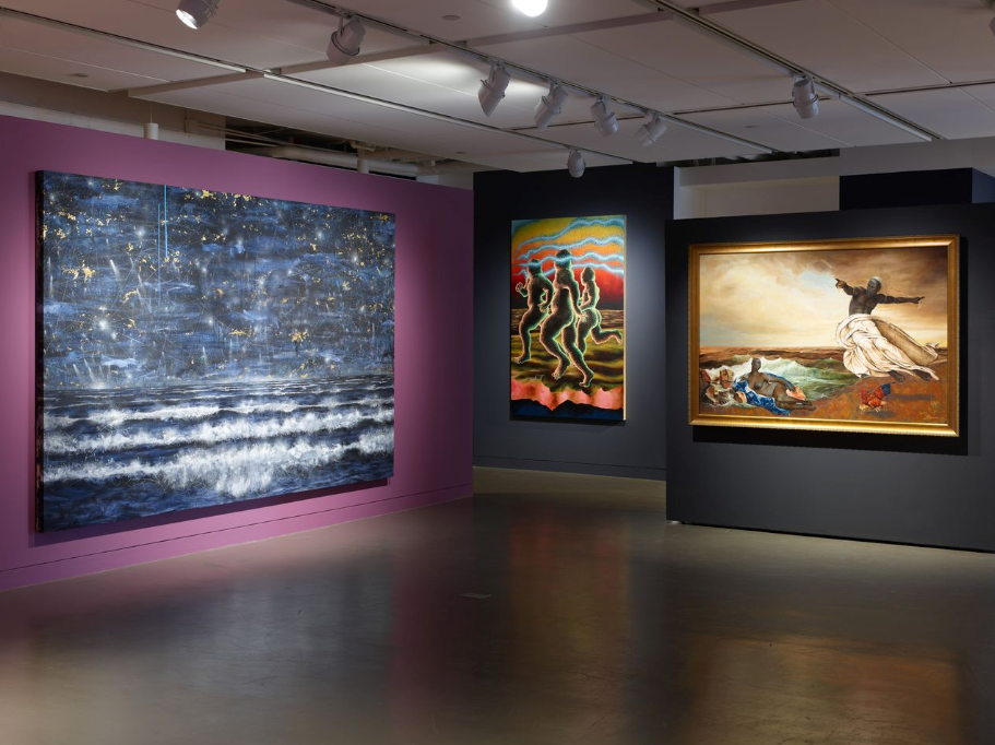 Installation view of Unbound: Art, Blackness & the Universe, with Harmonia Rosales’s Creation Story (2021) at right Photo: Josef Jacques, courtesy Museum of the African Diaspora