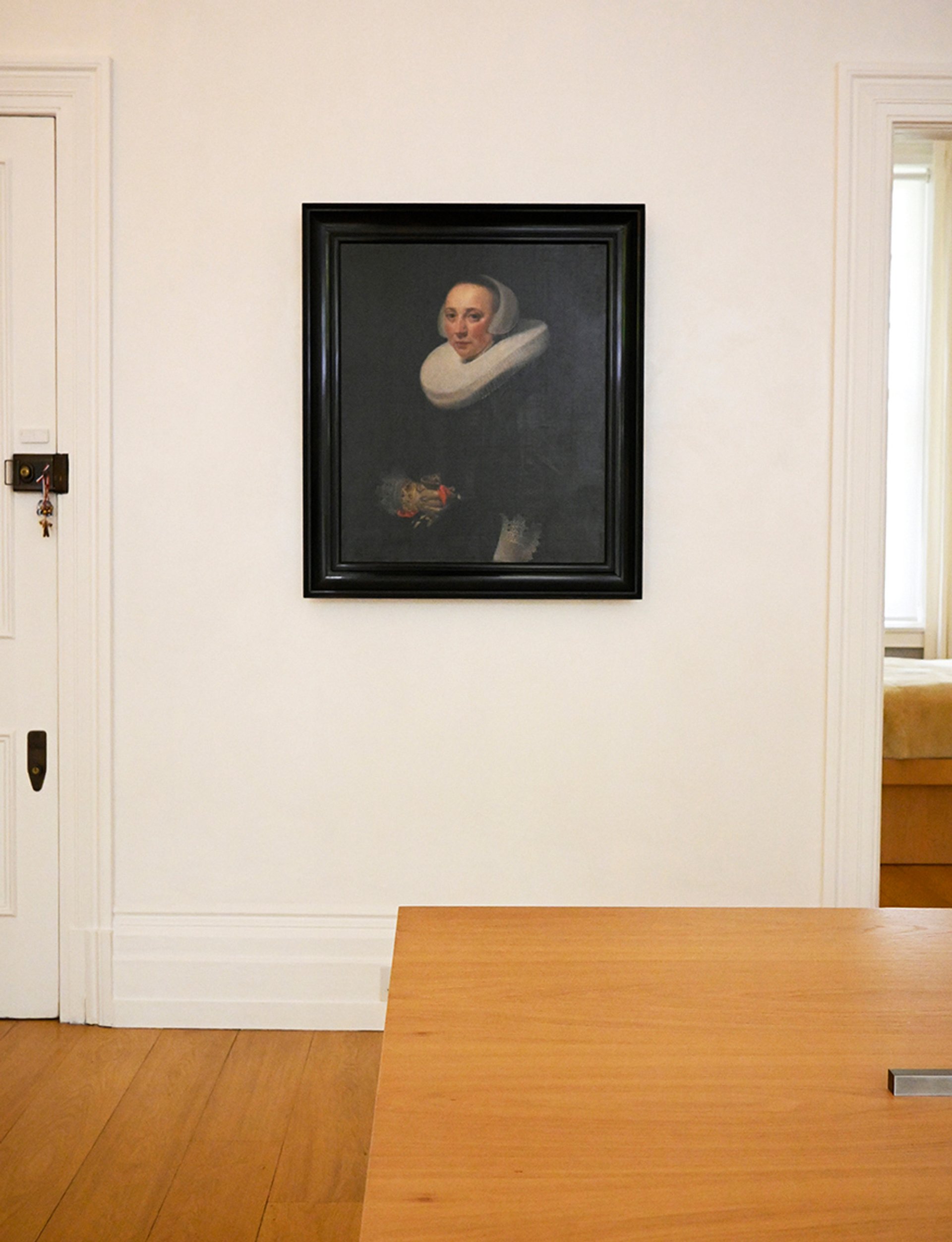 “It might sound a little bourgeois or pedestrian, but it’s my personal taste. I’m not trying to impress anyone with what I buy,” she explains. “And she is extraordinary,” she says of the painting’s subject. “She’s dressed in black against a black background. There are so many shades of black, so it’s very true to the spirit of Franz Kline. And she’s got the most elegant white ruff and a little pearl earring. But she’s unusual in that her hands are gloved.” (Most women in Dutch portraits of that time have visible wedding rings and often as not were painted as half of a pendant to hang alongside a likeness of her husband.)