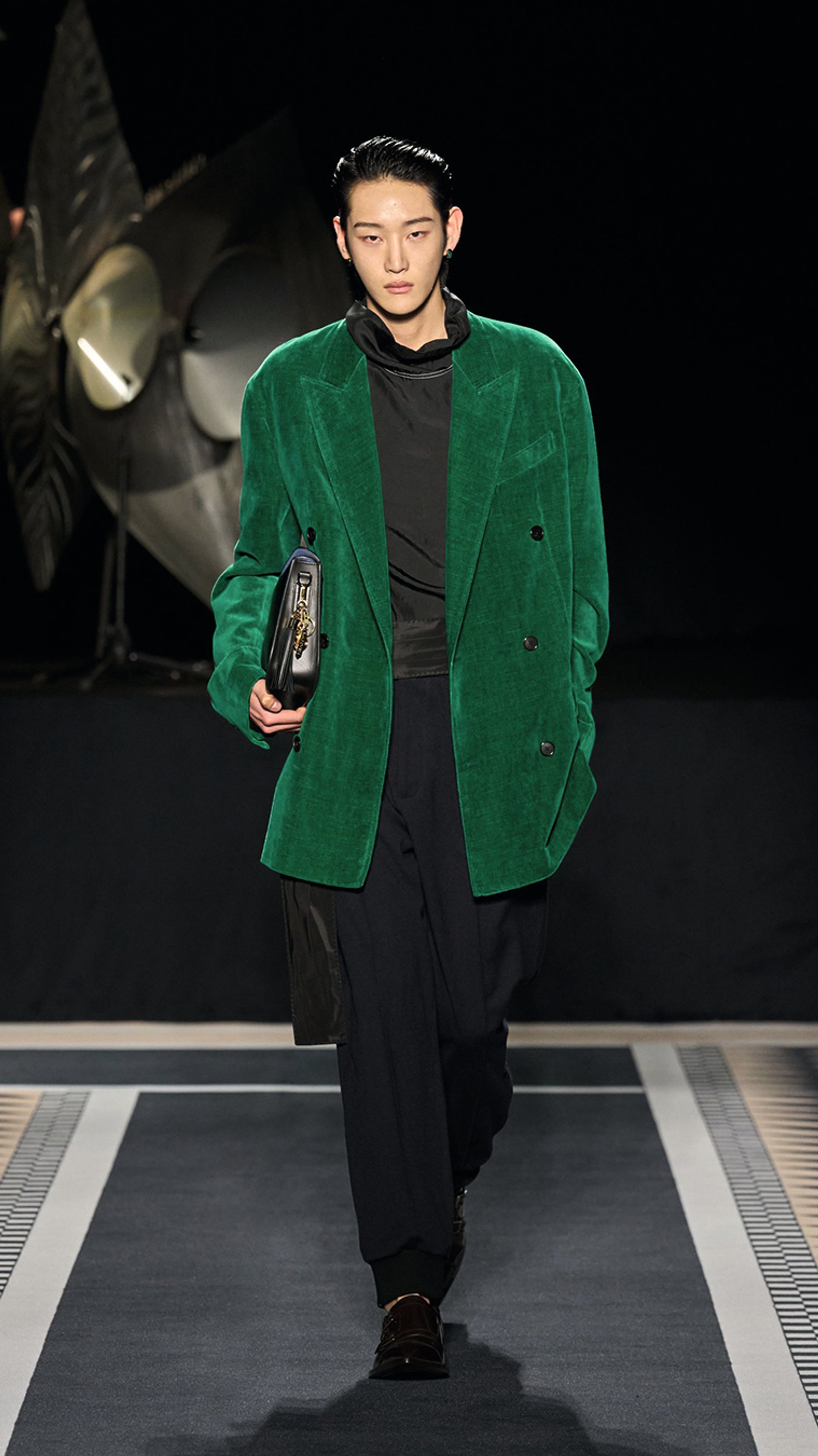 A jacket in green velvet from Lanvin’s autumn/winter 2025 collection inspired by the Vuillard portrait of Lanvin Filippo Fior/Gorunway.com