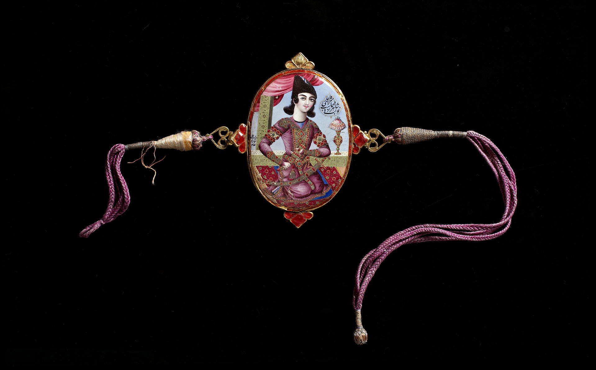 Historic objects featured include a Safavid textile by an unknown artist (1567); Ali Ghulam Khanezad’s Armband with gold and enamel inlay (around 1820), which depicts Prince Tahmasp Mirza, grandson of the ruling 18th-century Fath Ali Shah in Iran; and two wall tiles dating from 13th-century Iran, drawn from the National Museum’s collection.