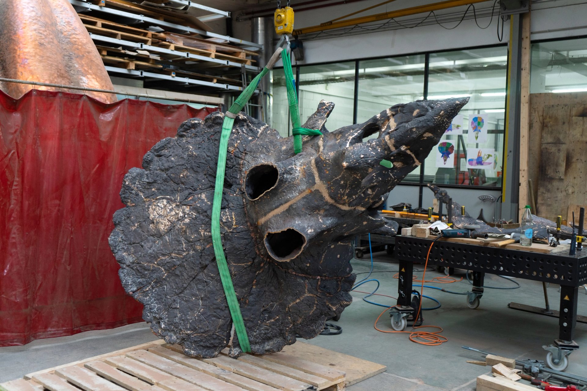 The sculpture was produced using digital modelling, which allowed Villar Rojas and his team to design every aperture found in a natural fossil before the bronze was cast at a local Swiss foundry.