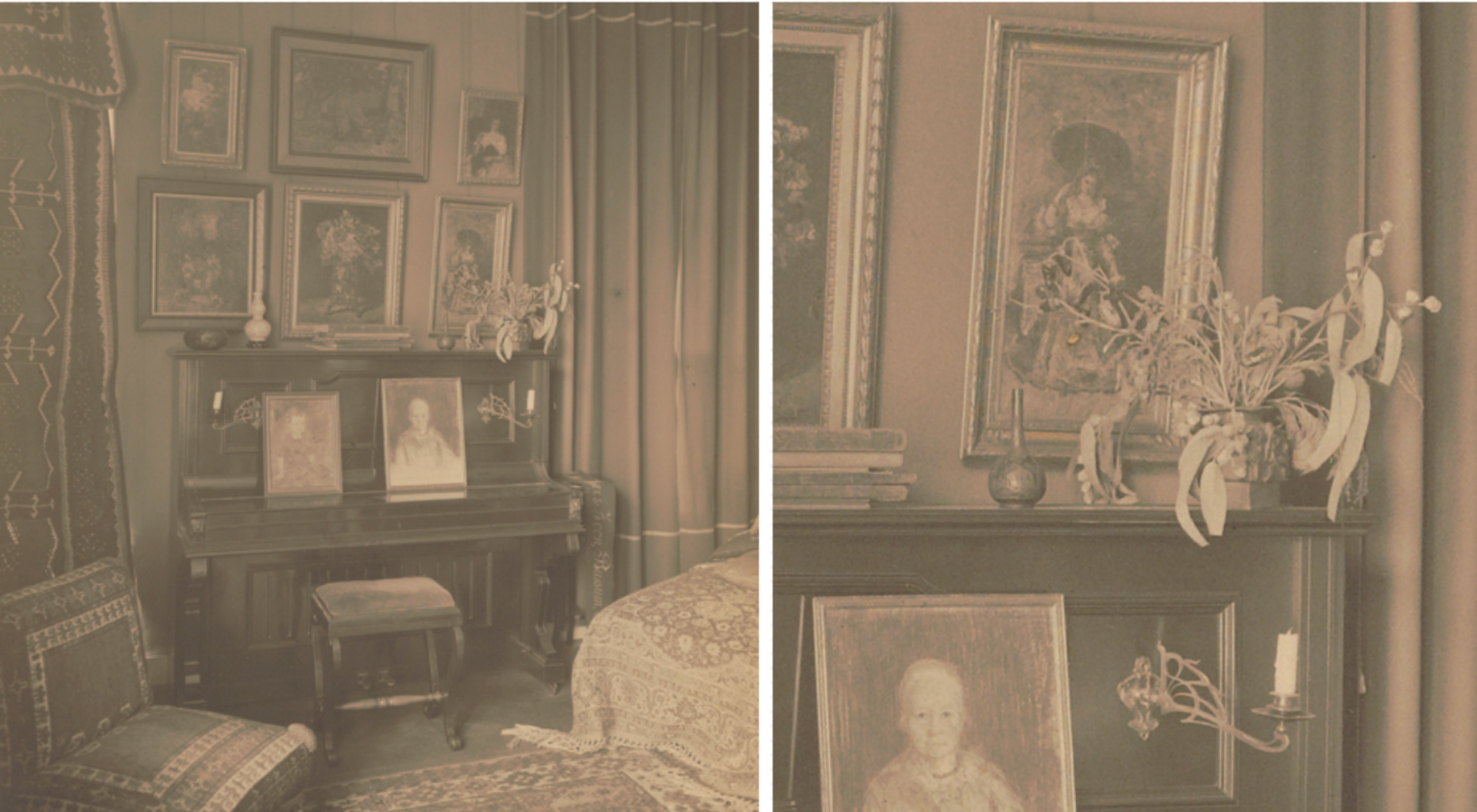 Jo had died in September 1925 and the apartment was about to be cleared. Above the piano's closed keyboard is a painting of her (next to a portrait of her young grandson, Theodoor), presumably placed there in memory on the instrument that she would never play again.