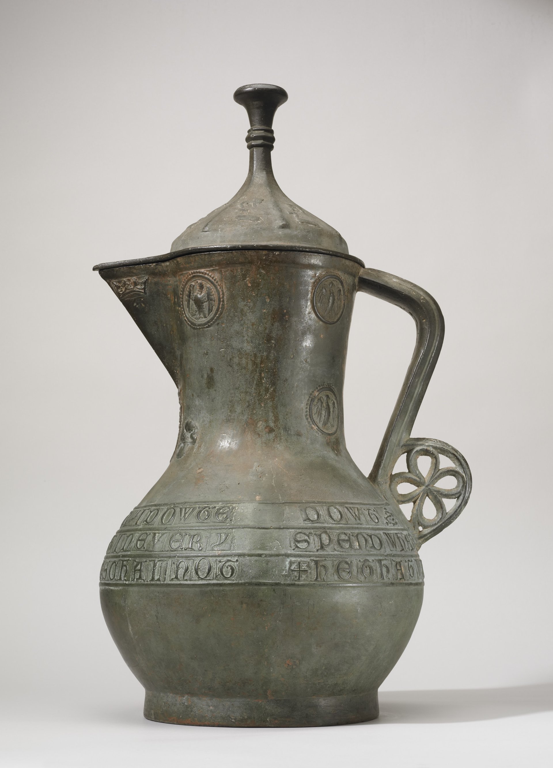 The Asante Ewer is one of the most intriguing objects in the British Museum. Standing 62cm high, the ewer is the largest surviving bronze vessel made in medieval England. Holding 19 litres, it may well have been made for serving wine at a grand feast, although it would probably have required two people to lift it. The British Museum dates the ewer to between 1340 and 1405. It bears the royal coat of arms and may well have been made for Richard II.