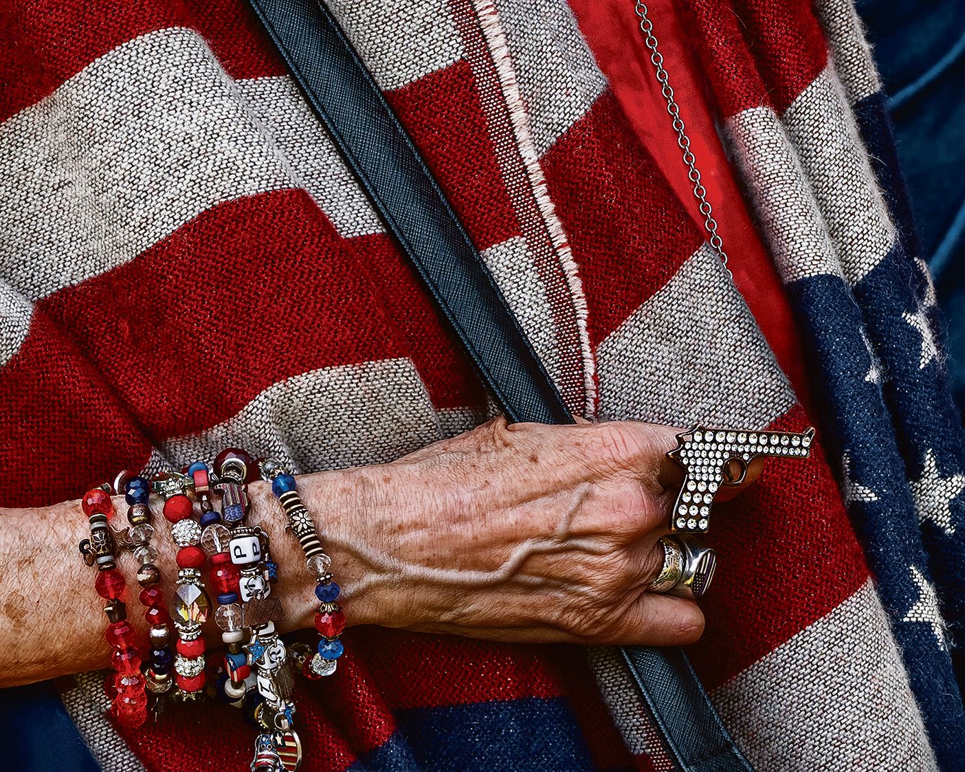 Through Samoylova’s lens, we discover a country in transition between a grand, decaying past and an uncertain, alarming future. The trappings of Americana litter the show like neglected artefacts of a vanished culture, replaced by new and meaner structures. One shot in Jacksonville shows a concrete highway overpass towering over an aging colonial-style building. Another image shows a woman in a sports car in Miami in front of a demolition site and a prison facility; a decal on the arm of an excavator features the grim slogan: “Watch it come down!”
