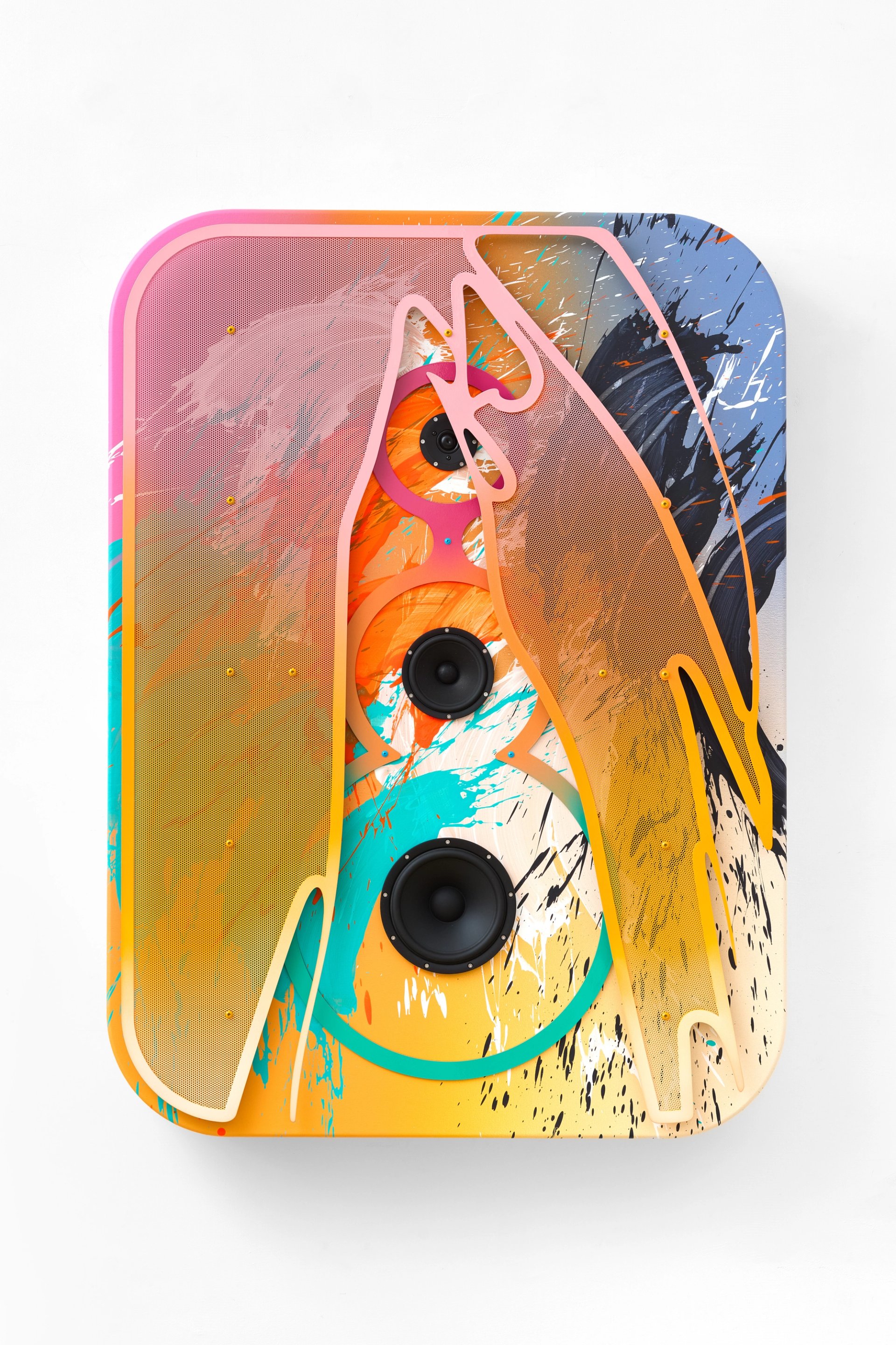 multimedia artist melds abstraction and sound in colourful compositions that pop and hum in equal measure. He represented Hungary at the 2024 Venice Biennale, moving his graffiti-inspired tableaux into a multisensory realm. In his Stereo Paintings series, lasercut steel, car paint and wood both eclipse and reveal a working speaker, putting a contemporary spin on audience immersion.
