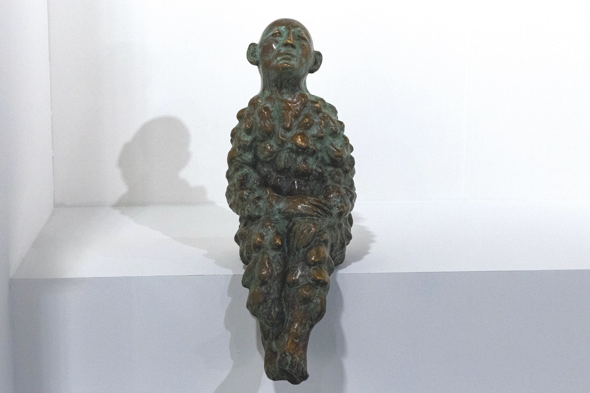 “Varga Weisz is an idiosyncratic artist working in Dusseldorf. This work is from her Bumpman series; the man here looks rather quizzical. She trained as a woodworker, and her work is often compared to medieval art. This work has a fascinating texture: you think it’s ceramic but it’s actually glazed wood.”