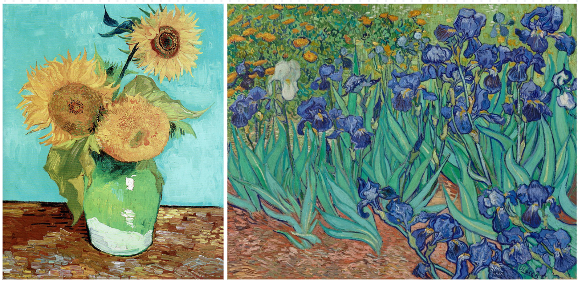 Van Gogh’s Three Sunflowers (August 1888) and Irises (May 1889) Private collection and J. Paul Getty Museum, Los Angeles