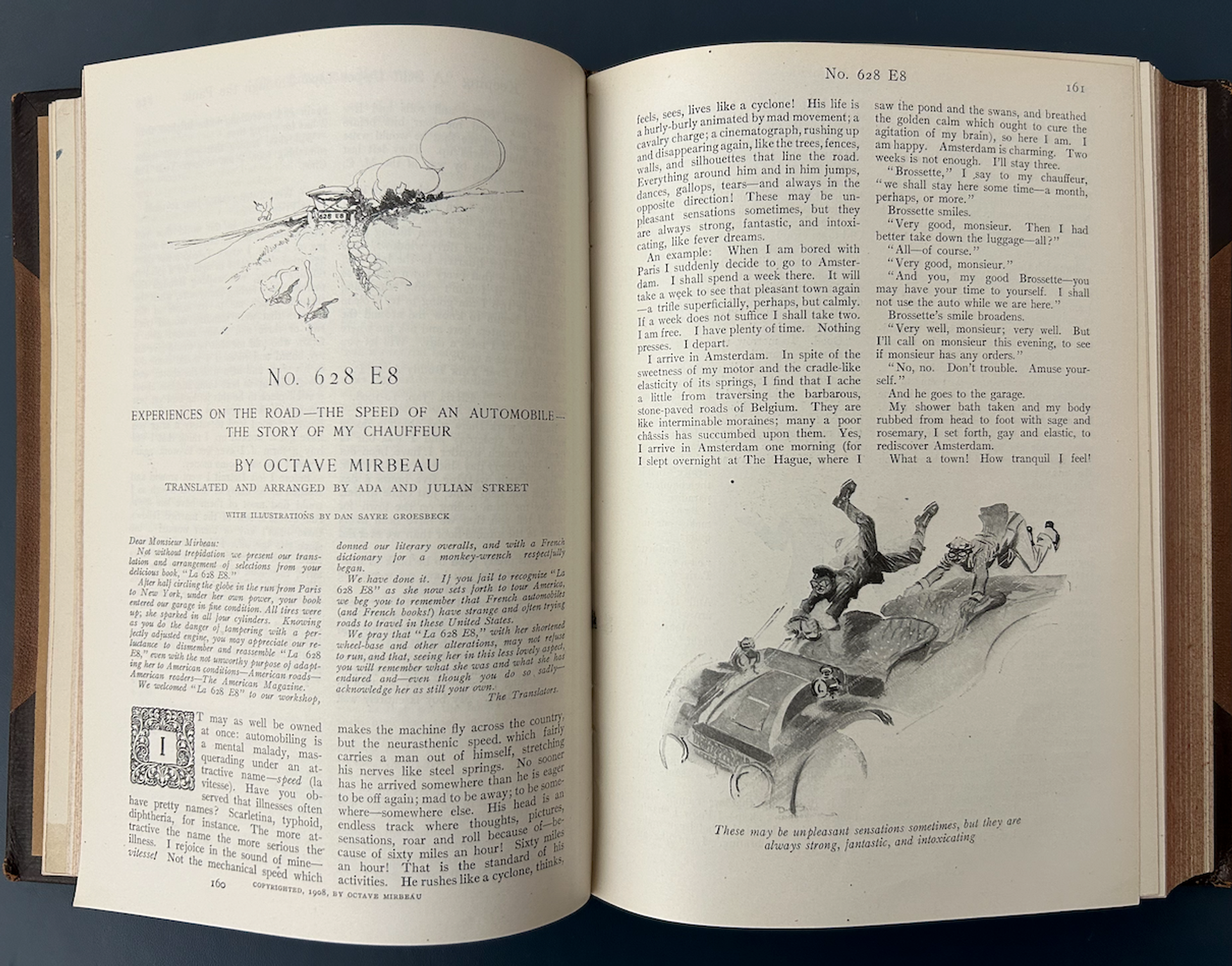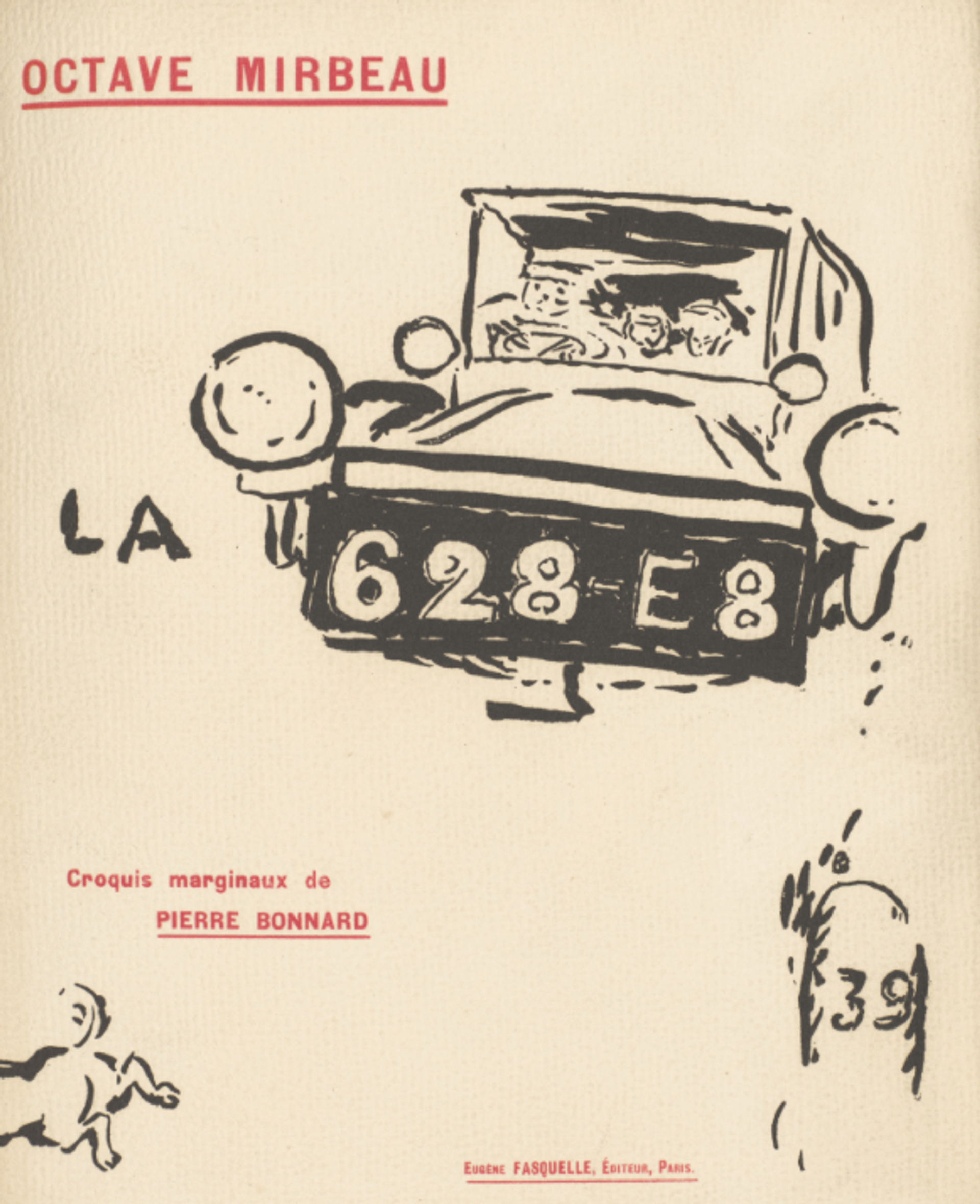 In 1908, a year after Mirbeau’s original publication, the artist Pierre Bonnard drew over 100 illustrations for a deluxe edition of La 628-E8. Bonnard had been a member of the Nabis (Prophets) group, followers of the Post-Impressionists—and admirers of both Paul Gauguin and Van Gogh.