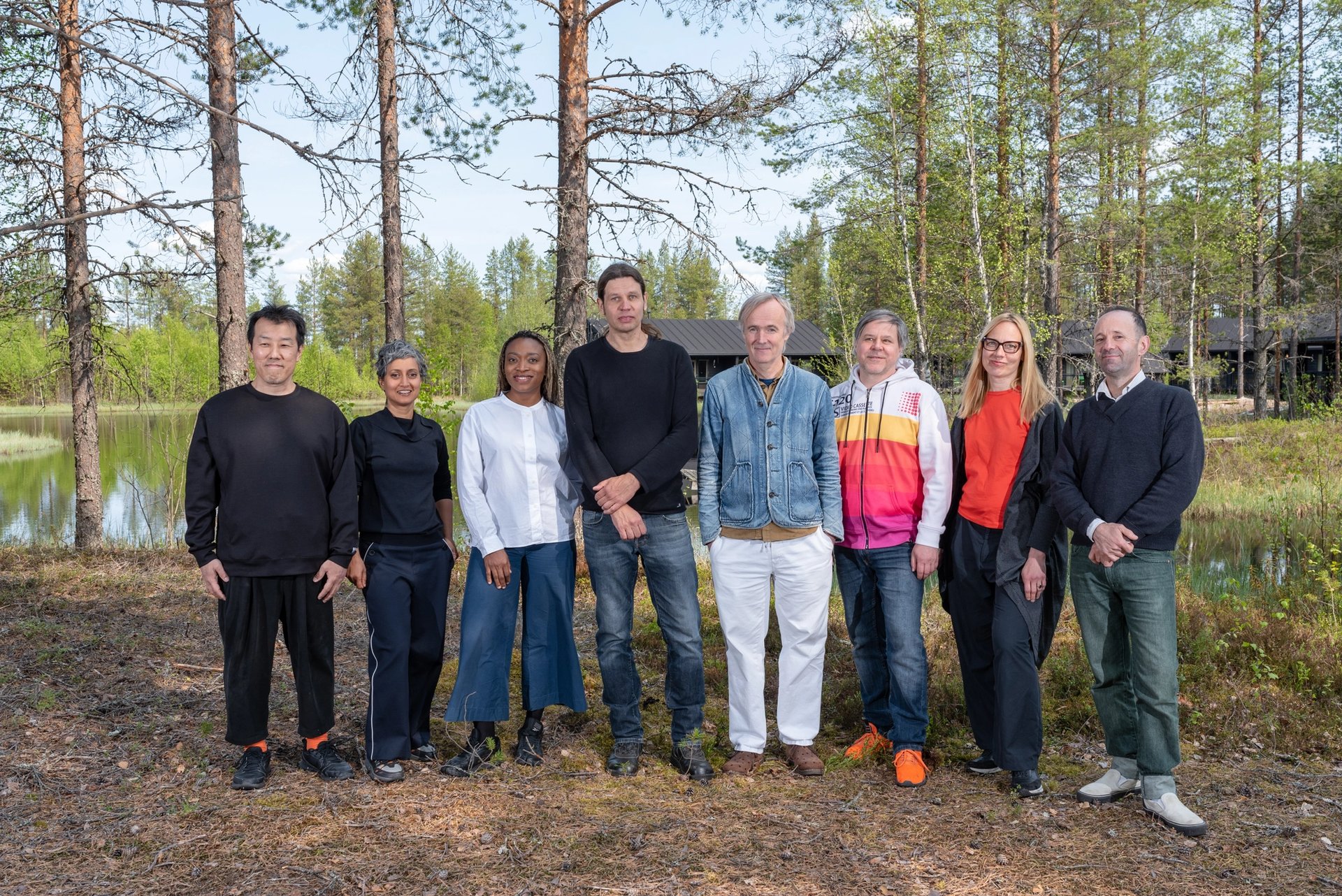Climate Clock is a trail of seven new permanent works, commissioned from well-known international artists. From left: Takahiro Iwasaki, Rana Begum, Ranti Bam, Antti Laitinen, Rasmus Rosengren Nielsen of Superflex, Oliver Kochta-Kalleinen, Tellervo Kalleinen and Gabriel Kuri. Photographer: Kevin Kallombo