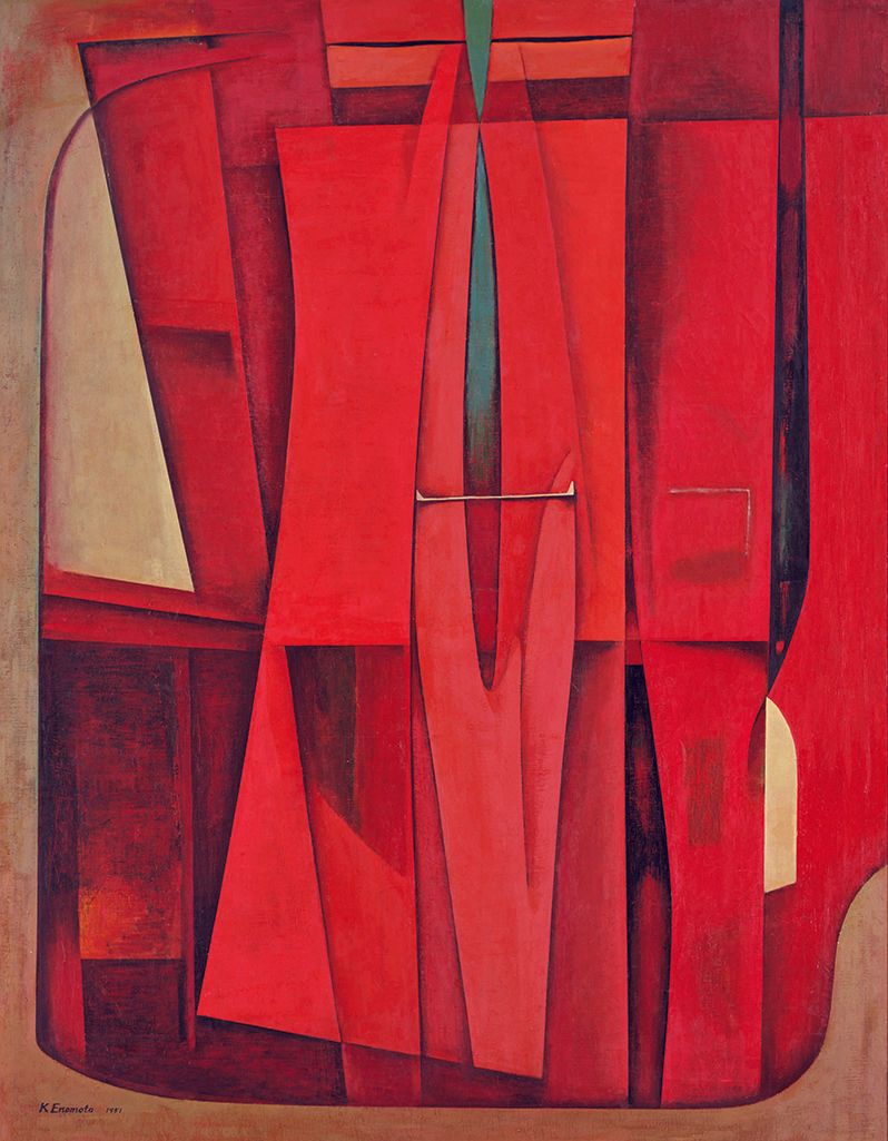 The show travels to Momat from the Toyota Municipal Museum of Art. It was only when descendants of the painter Kazuko Enomoto encountered her works there (she has three works in public collections and a few more in private holdings) that the curators learned she had died in 2019, leaving behind a body of work hitherto unseen. That suggests there is more to be discovered and more research to be done—a hopefulness that resonates with the buoyancy of the works themselves.